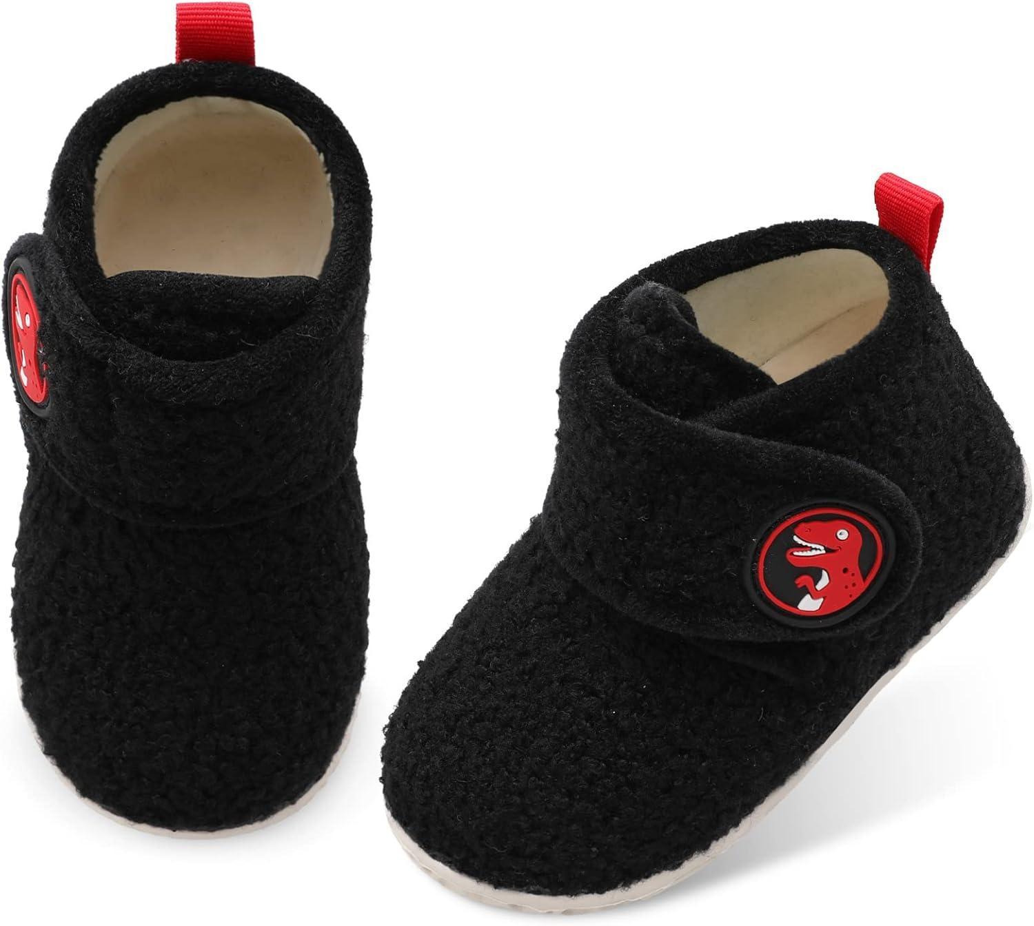 LeIsfIt Toddler Slippers Boys Girls House Slippers Kids Winter Boots Warm Lightweight House Shoes Non-slip Indoor Slipper Shoes(A-black)