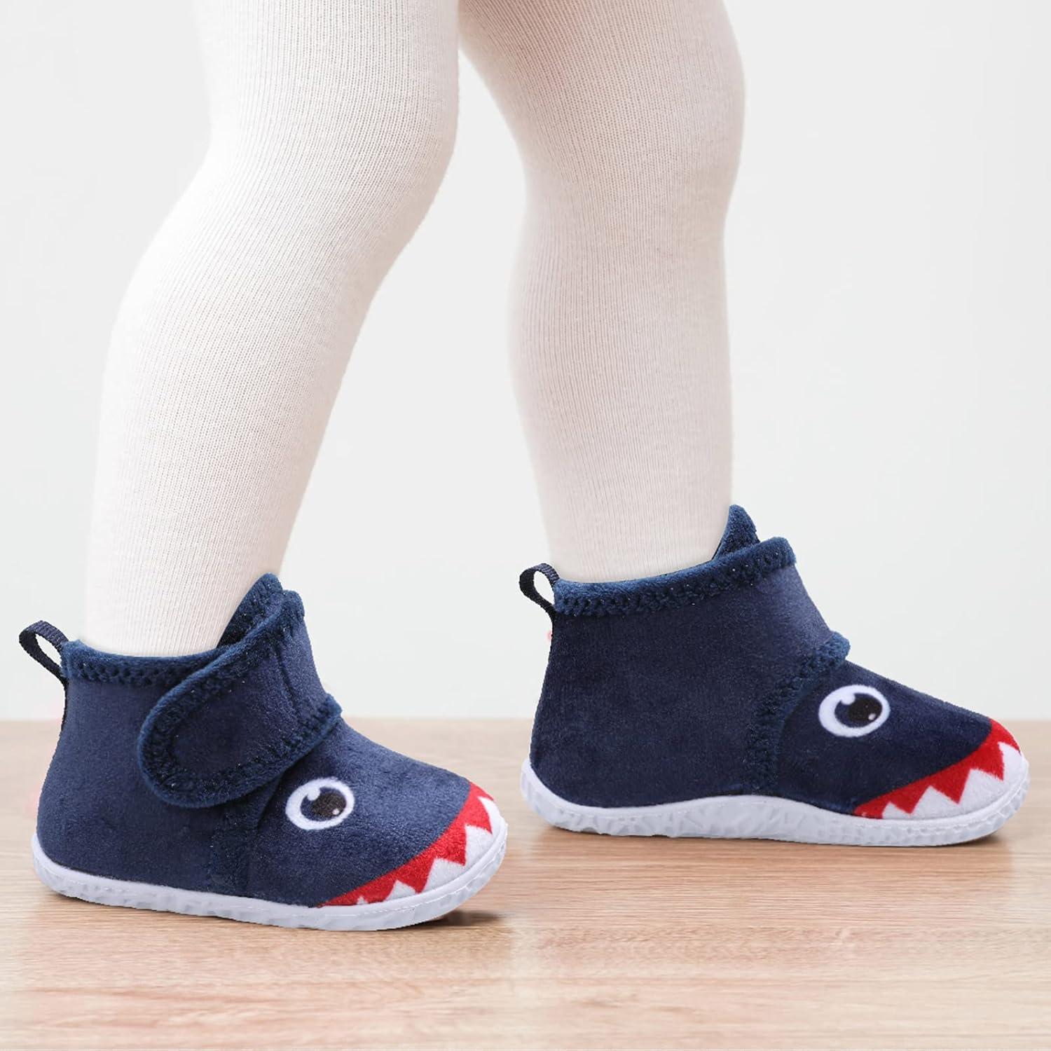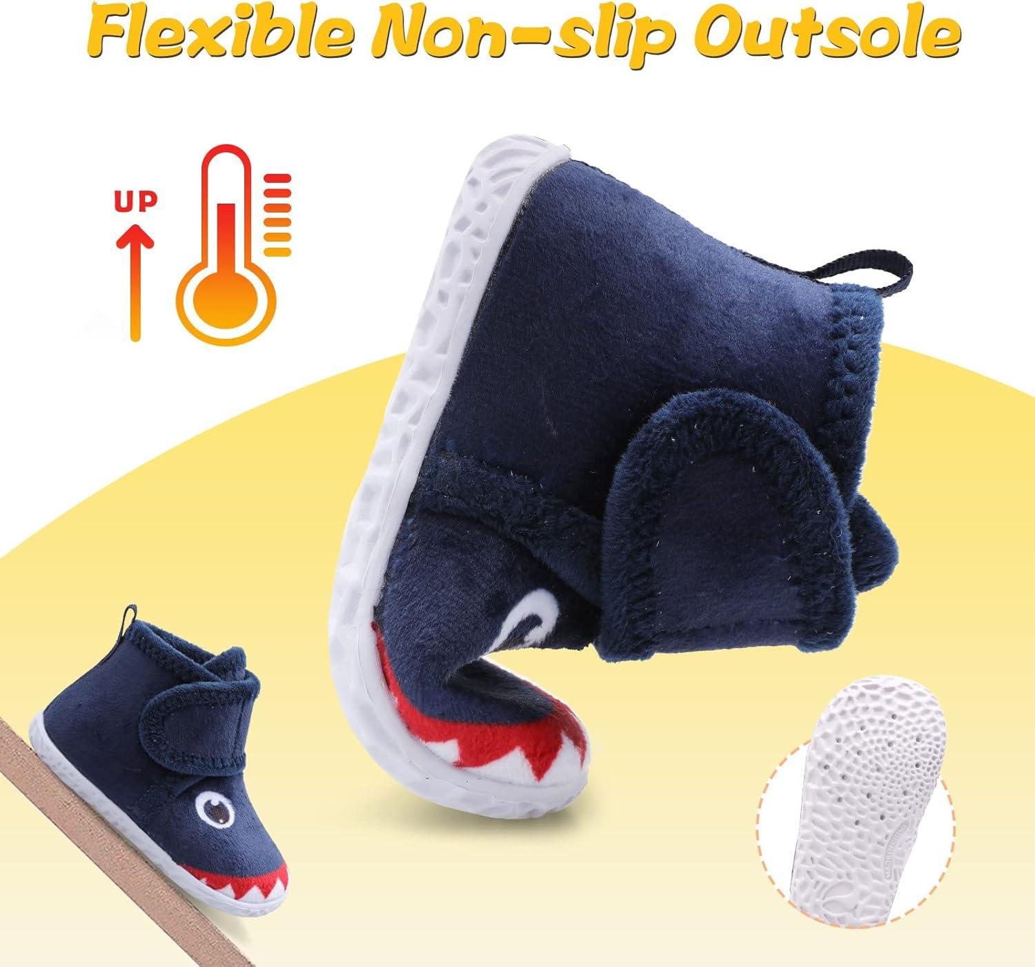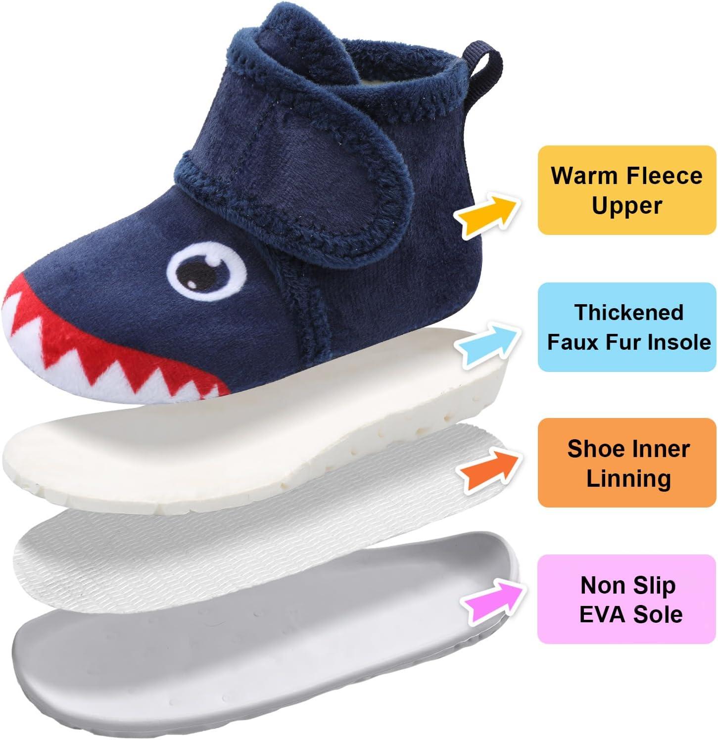 LeIsfIt Toddler Slippers Boys Girls House Slippers Kids Winter Boots Warm Lightweight House Shoes Non-slip Indoor Slipper Shoes(C-blueshark)