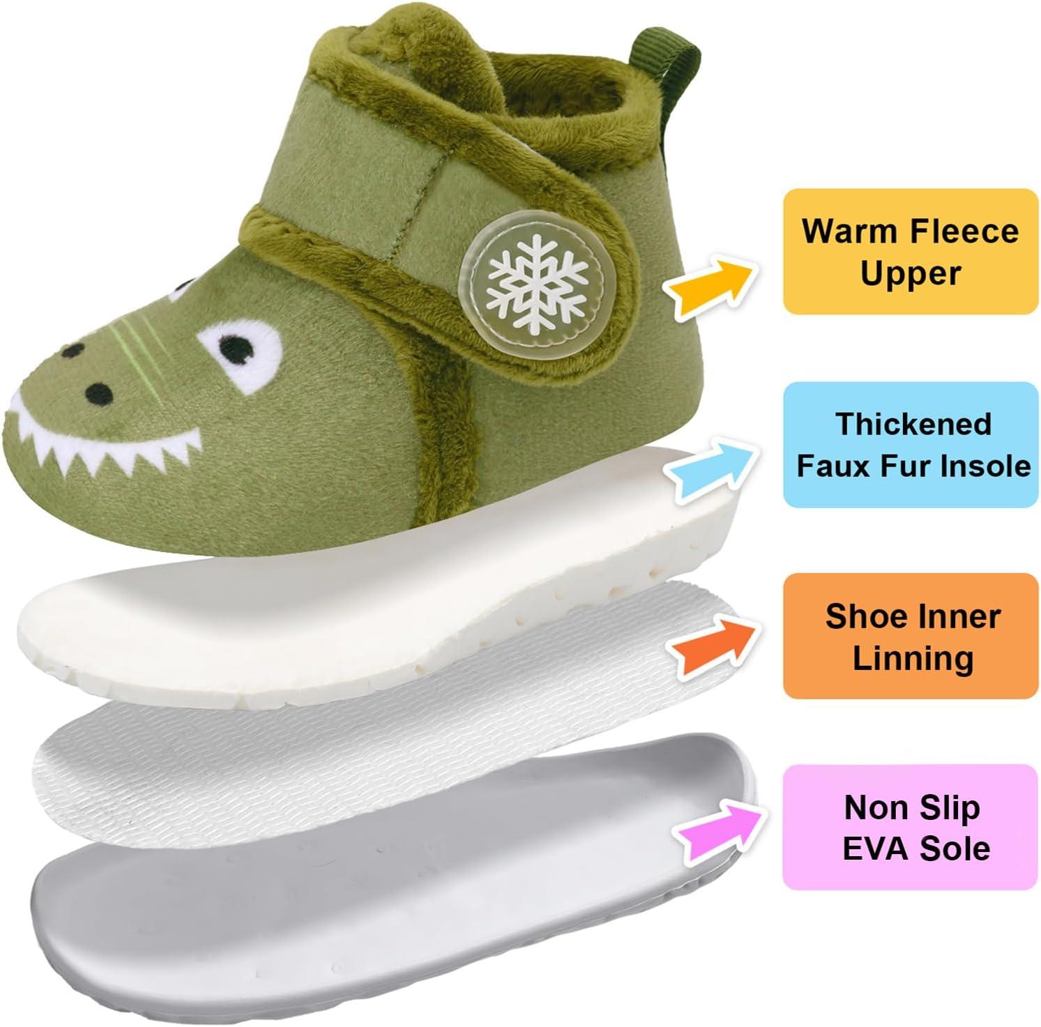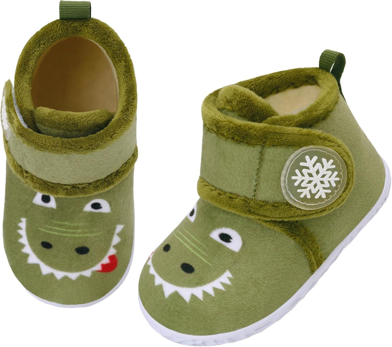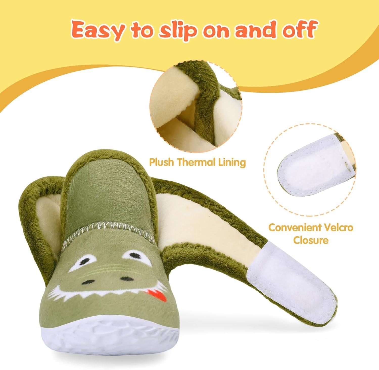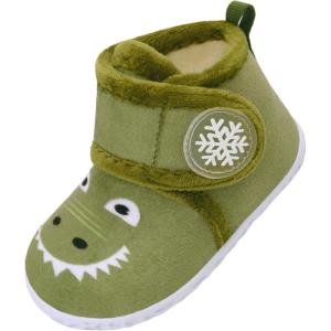 LeIsfIt Toddler Slippers Boys Girls House Slippers Kids Winter Boots Warm Lightweight House Shoes Non-slip Indoor Slipper Shoes(C-green Dinosaur)
