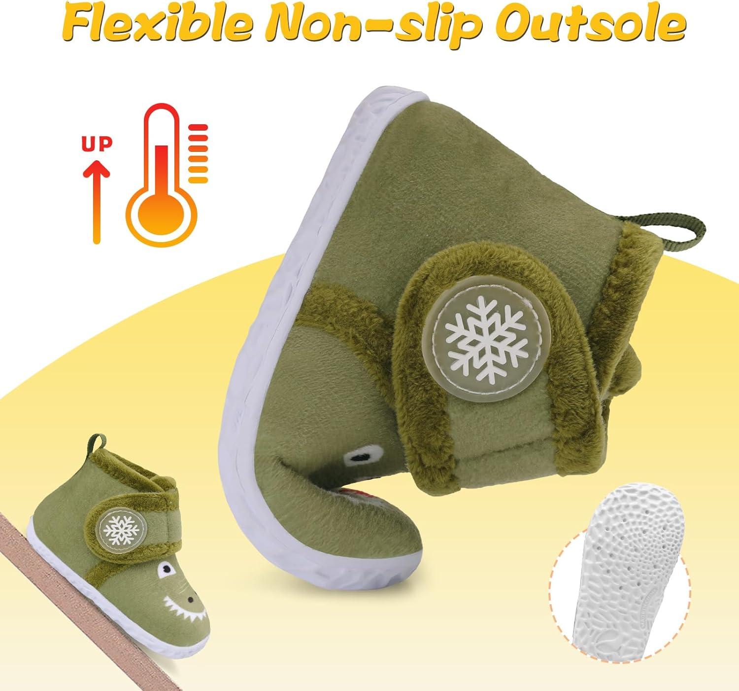 LeIsfIt Toddler Boots Girls Boys Warm Winter Boots Cozy Plush Lining Winter Shoes Indoor Outdoor Faux Fur Booties(Bluedinosaur)