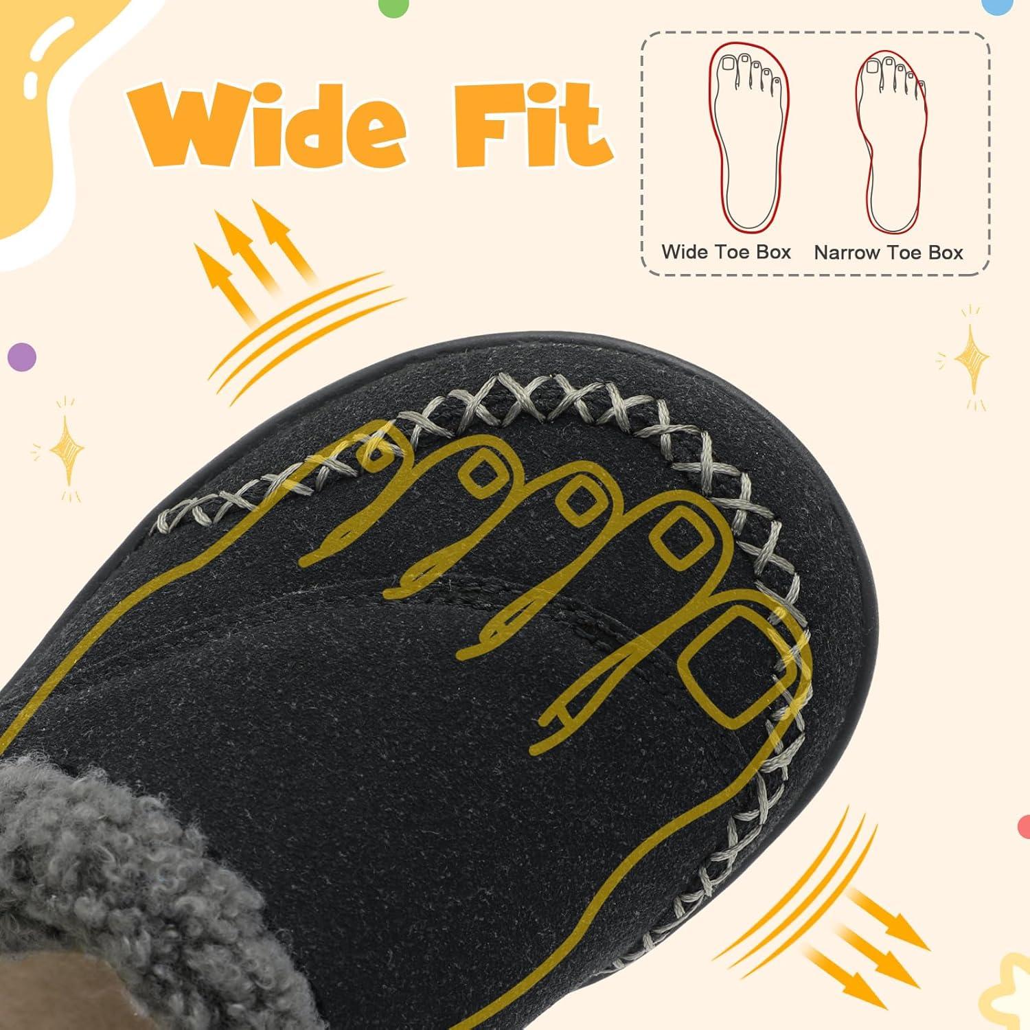 LeIsfIt Toddler Slippers Boys Girls Moccasin Slippers Kids Warm Slip-On House Shoes with Non-Slip Sole for Indoor & Outdoor(Black)