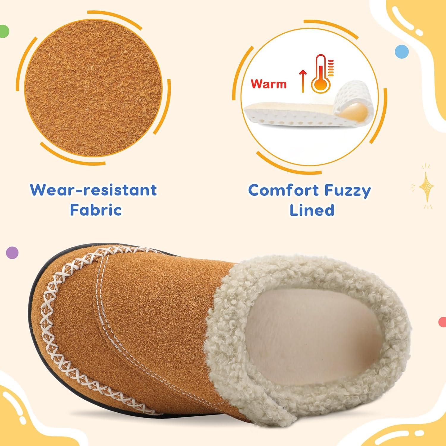 LeIsfIt Toddler Slippers Boys Girls Moccasin Slippers Kids Warm Slip-On House Shoes with Non-Slip Sole for Indoor & Outdoor(Apricot)