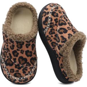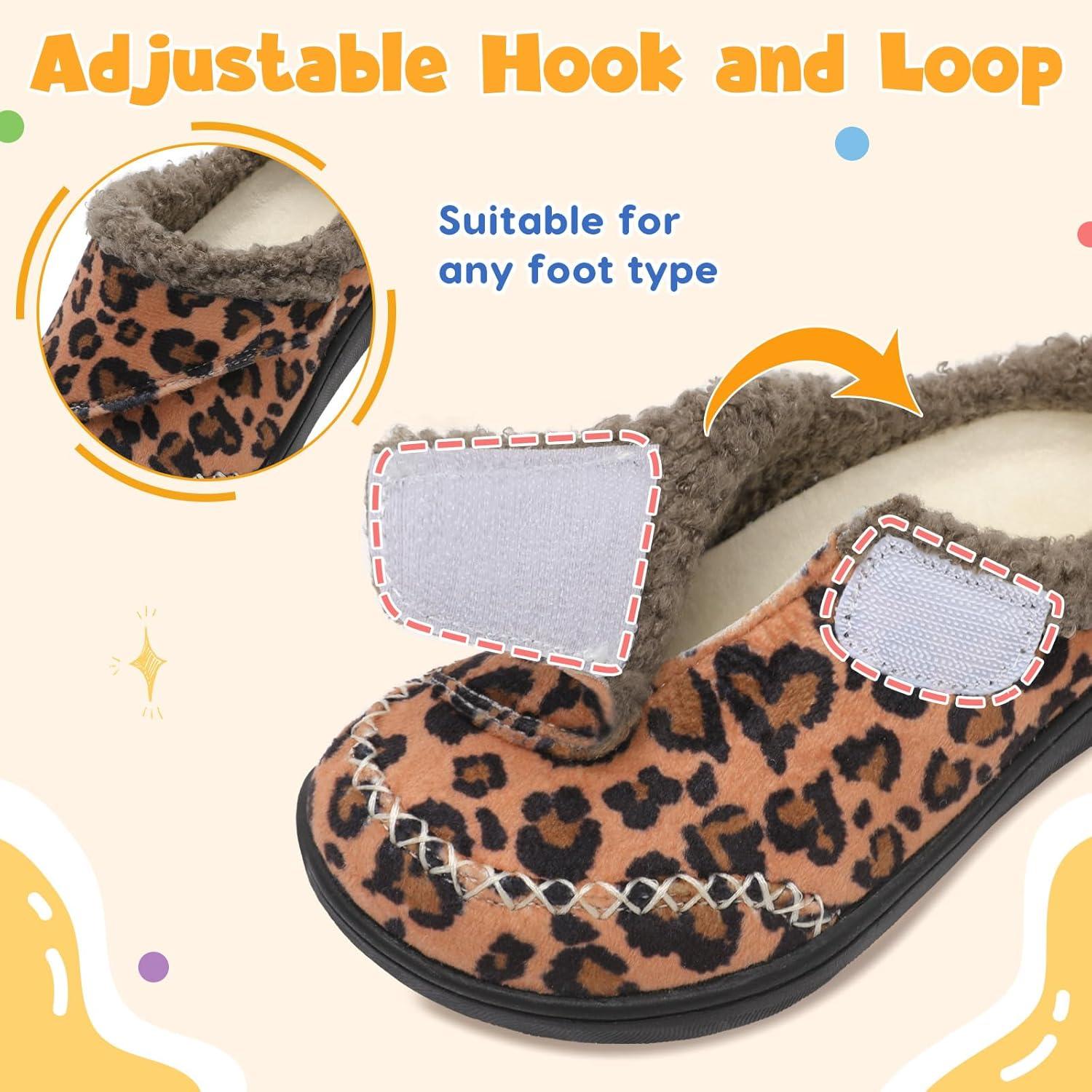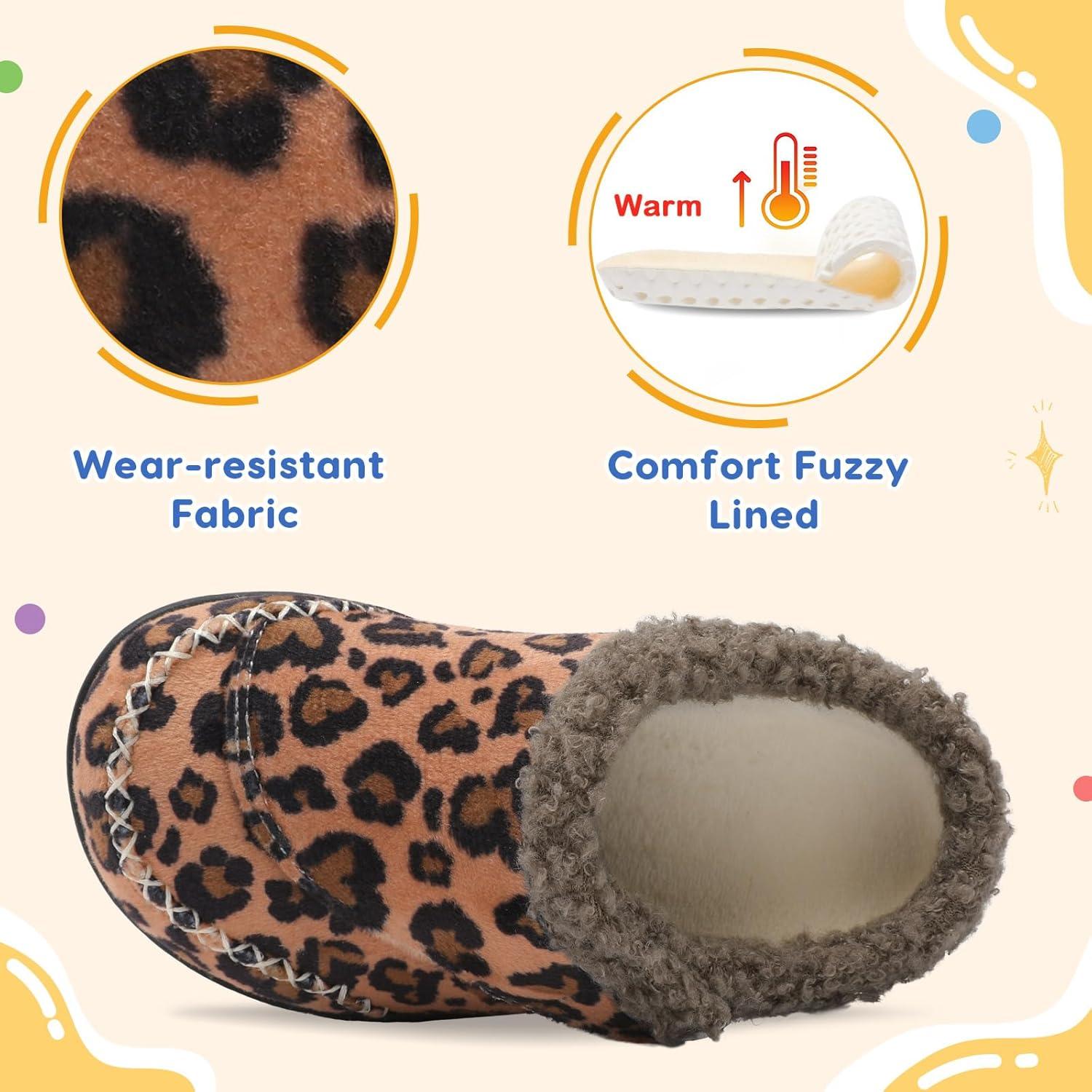LeIsfIt Toddler Slippers Boys Girls Moccasin Slippers Kids Warm Slip-On House Shoes with Non-Slip Sole for Indoor & Outdoor(Leopard)