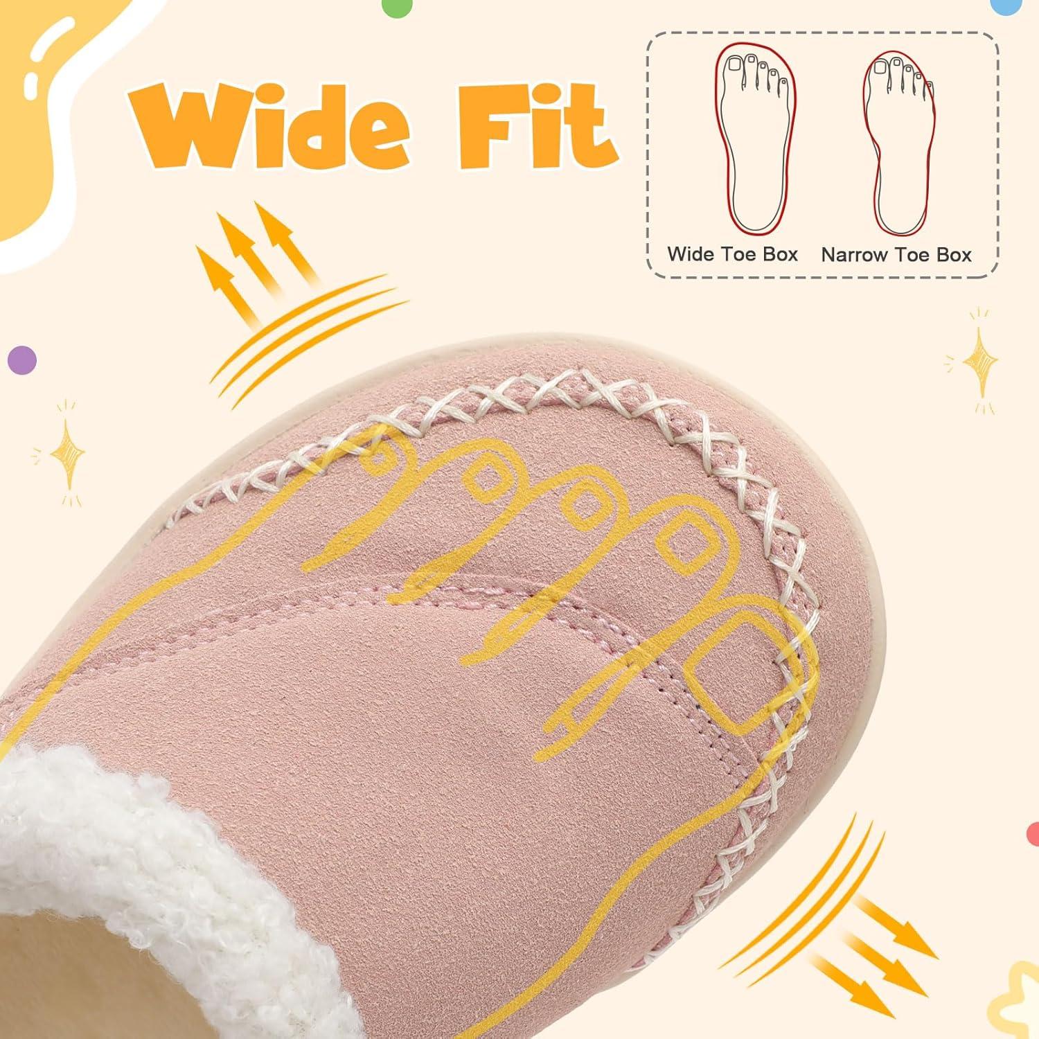 LeIsfIt Toddler Slippers Boys Girls Moccasin Slippers Kids Warm Slip-On House Shoes with Non-Slip Sole for Indoor & Outdoor(Pink)