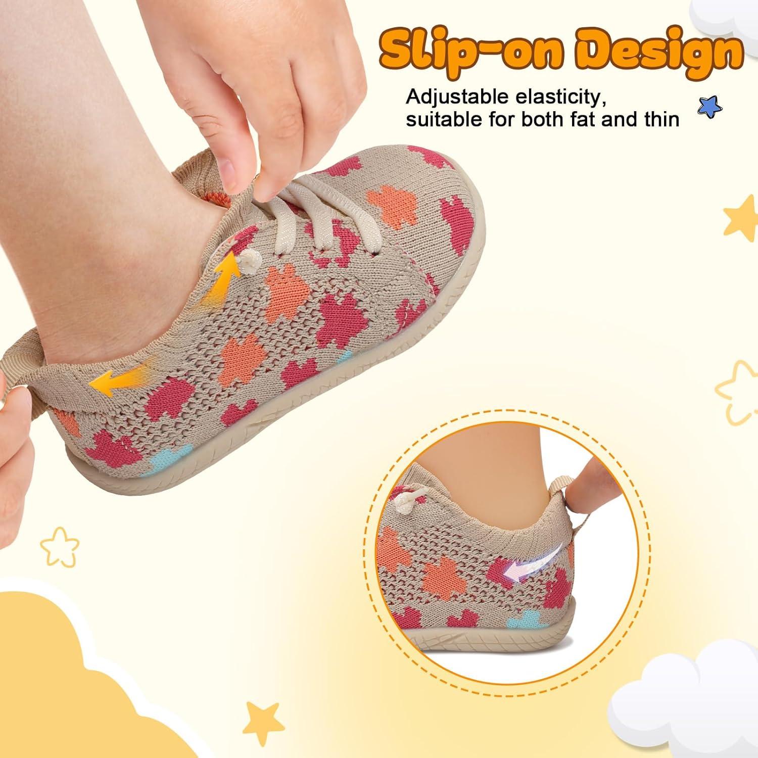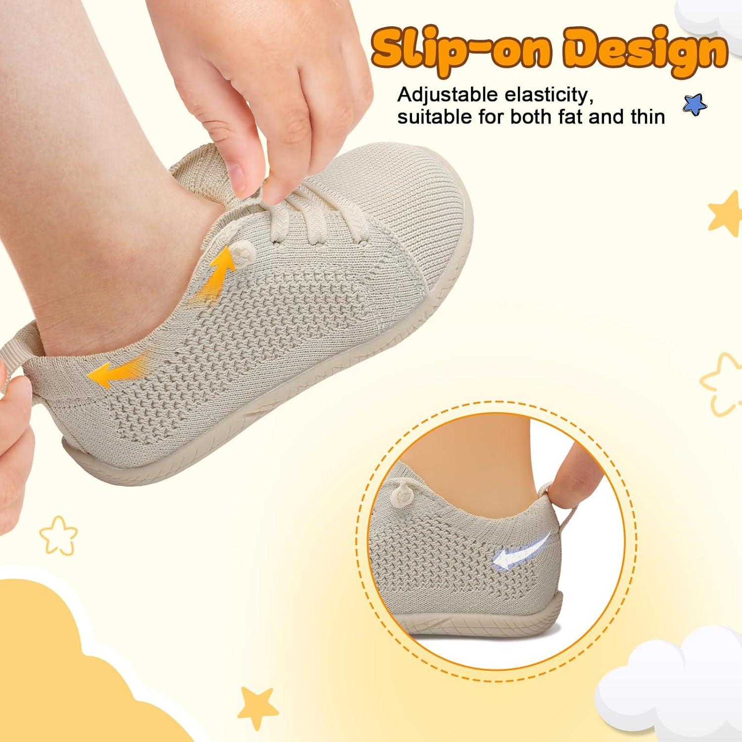LeIsfIt Baby Shoes Boys Girls First Walking Shoes Non-Slip Infant Sneakers Lightweight Slip-on Crib Sneakers for First Walkers(Beige)