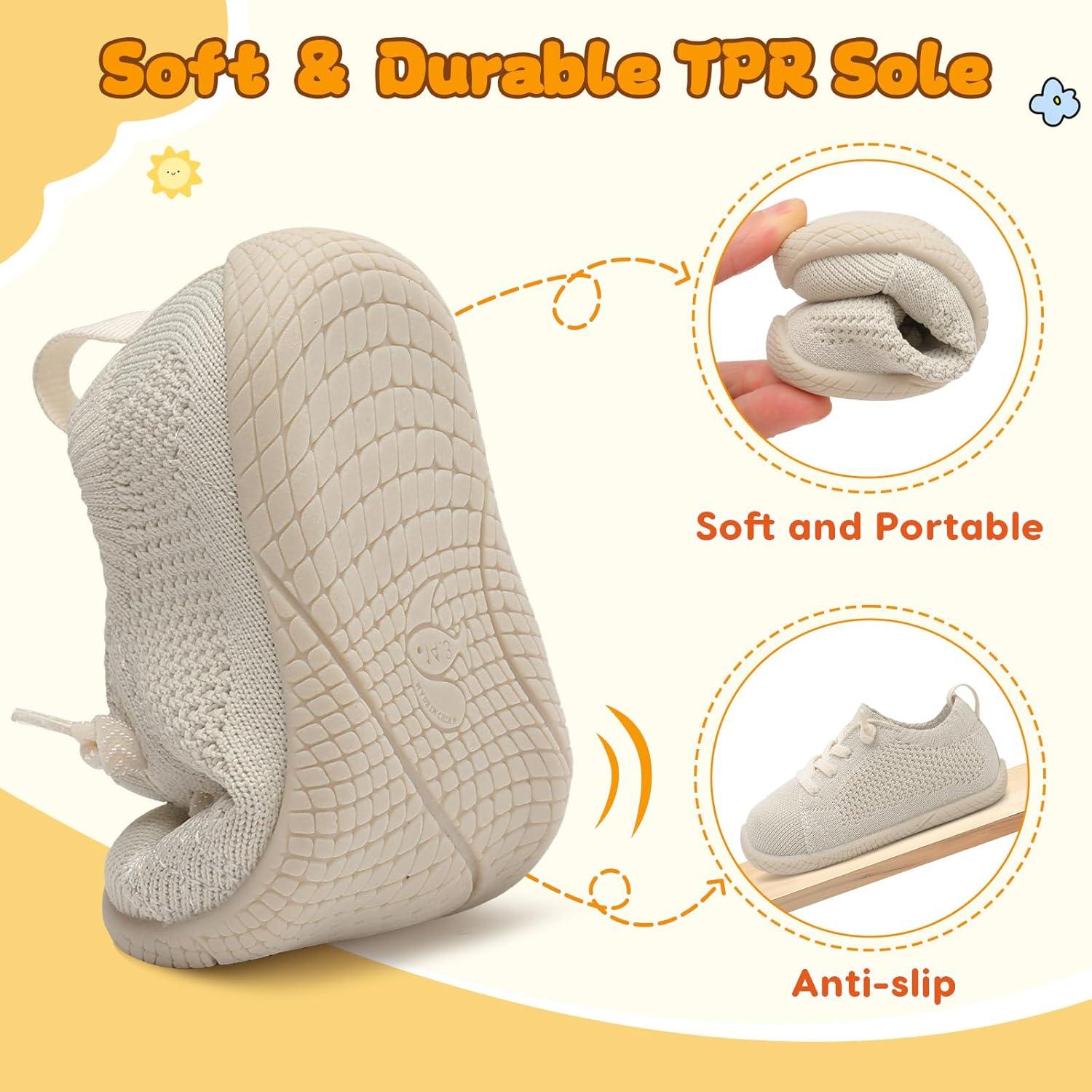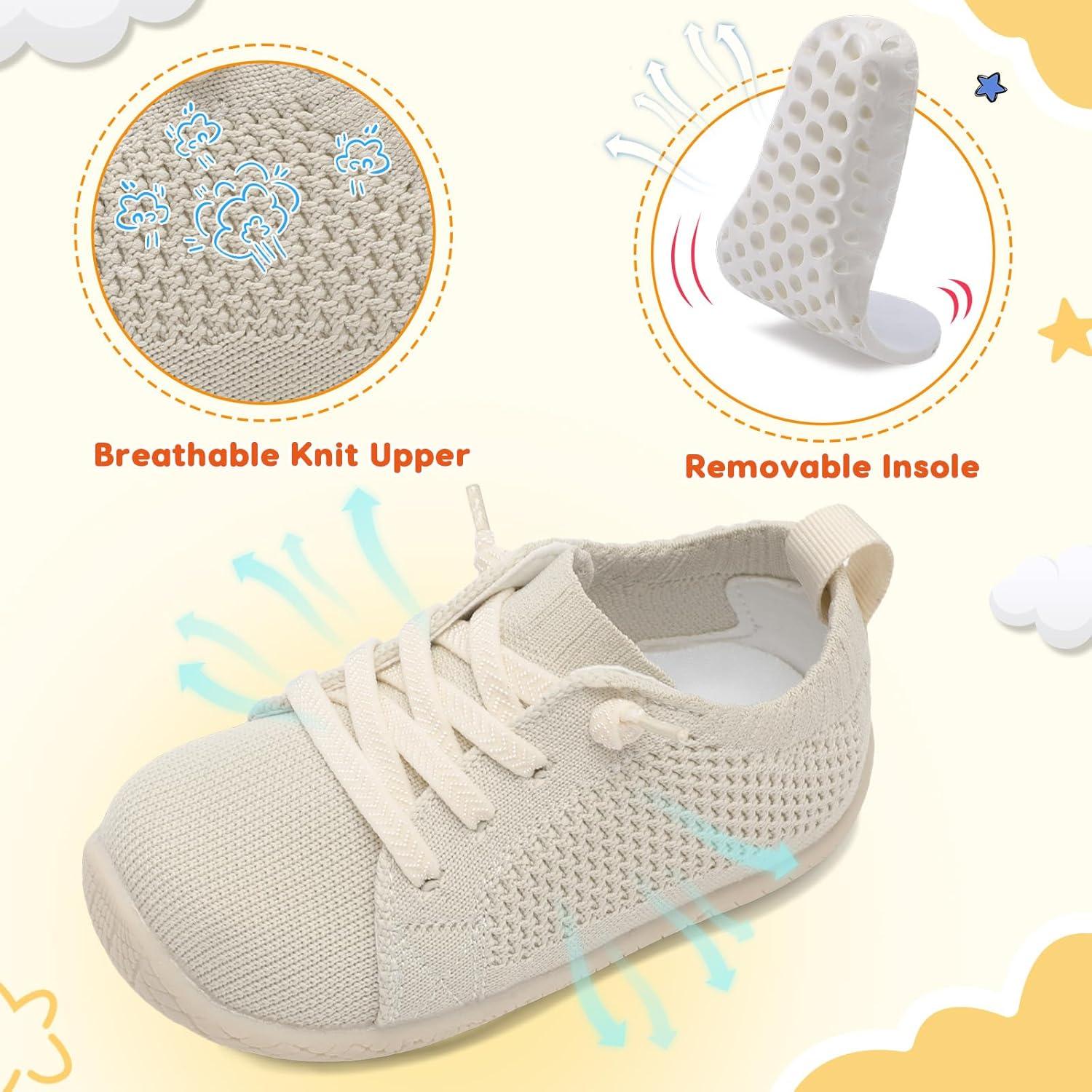 LeIsfIt Baby Shoes Boys Girls First Walking Shoes Non-Slip Toddler Breathable Sneakers Infant Sneakers(D-beige)