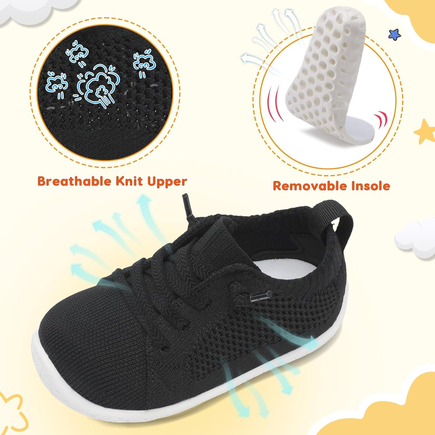 LeIsfIt Baby Shoes Boys Girls First Walking Shoes Non-Slip Toddler Breathable Sneakers Infant Sneakers(Black)