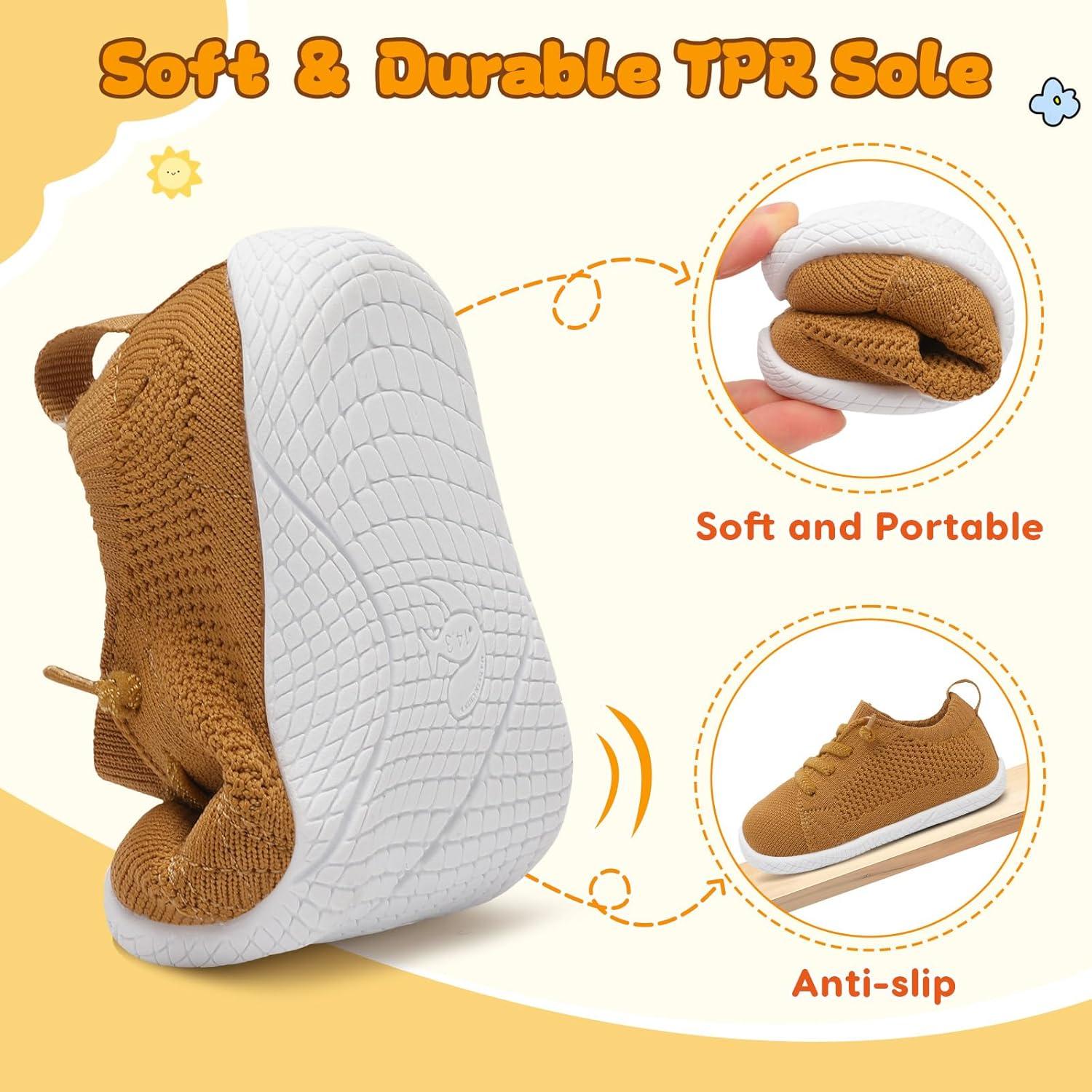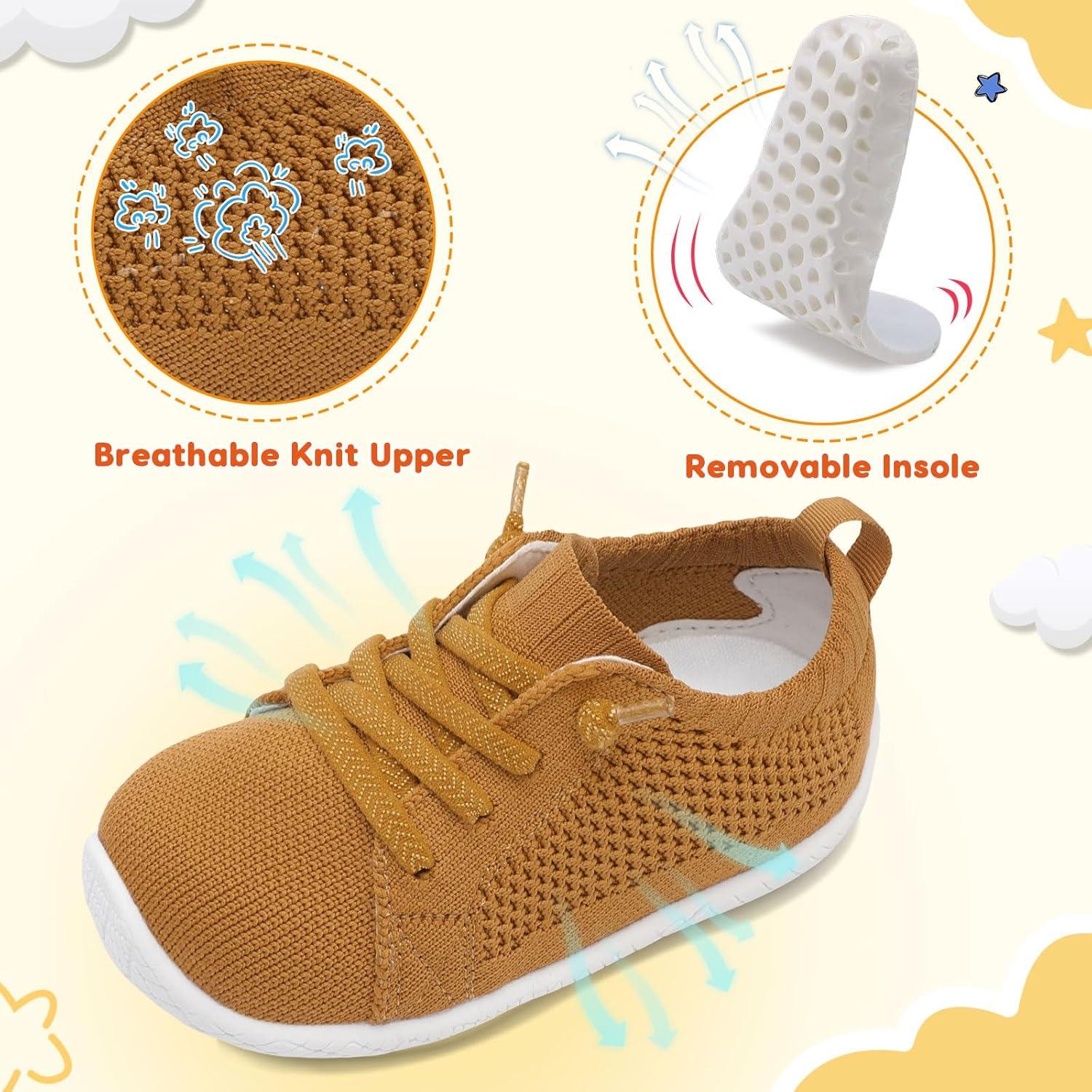 LeIsfIt Baby Shoes Girls Boys First Walking Shoes Infant Sneakers Crib Shoes Lightweight Non-Slip Shoes(Khaki)