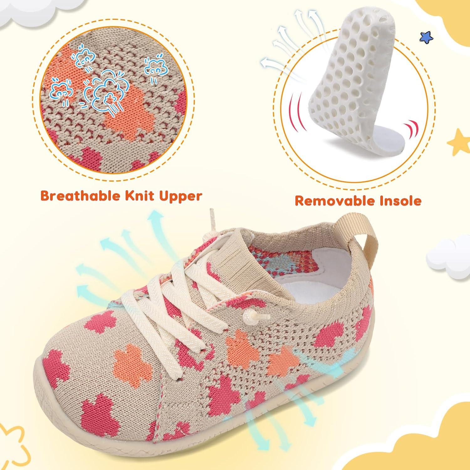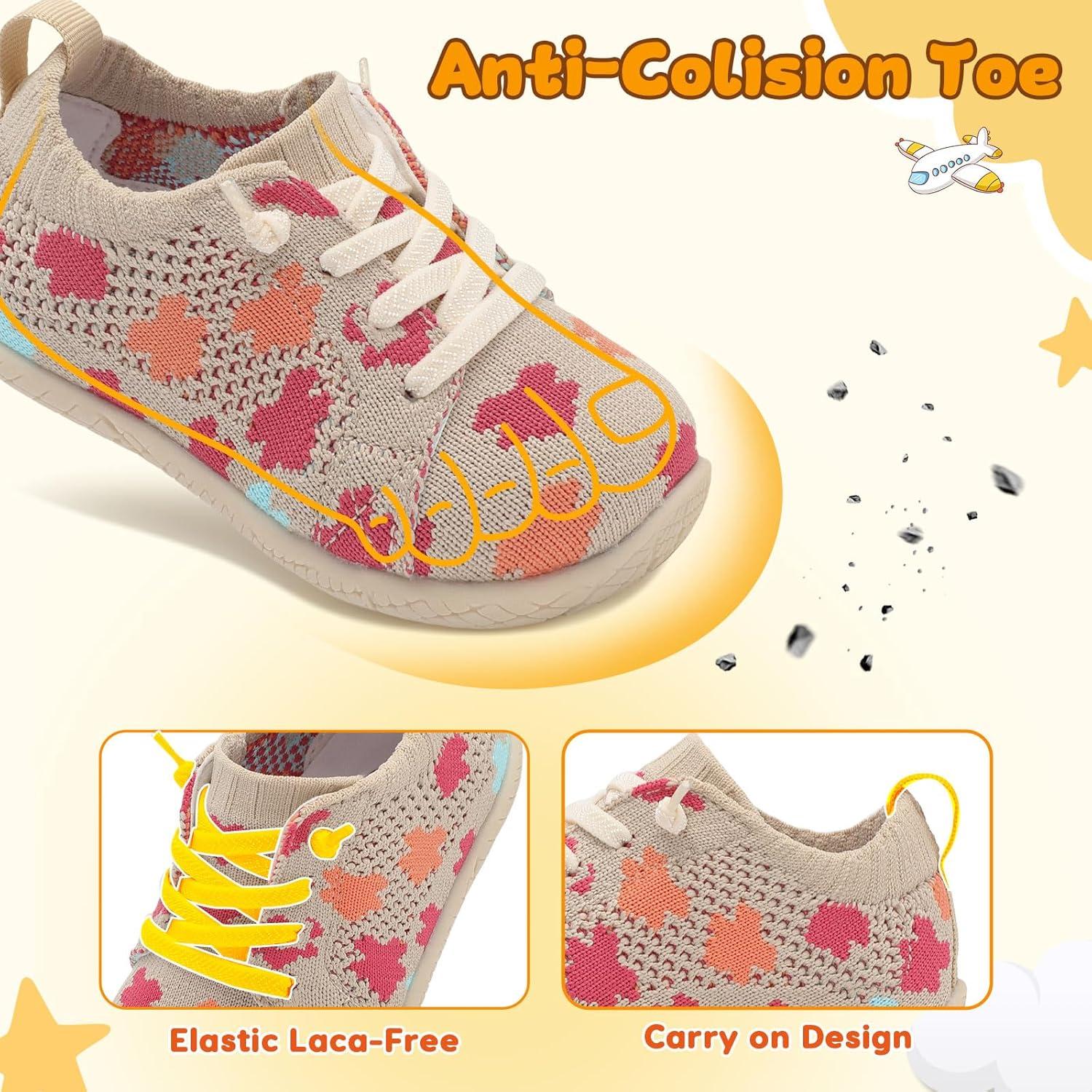 LeIsfIt Baby Shoes Boys Girls First Walking Shoes Non-Slip Toddler Breathable Sneakers Infant Sneakers(A-greypink)