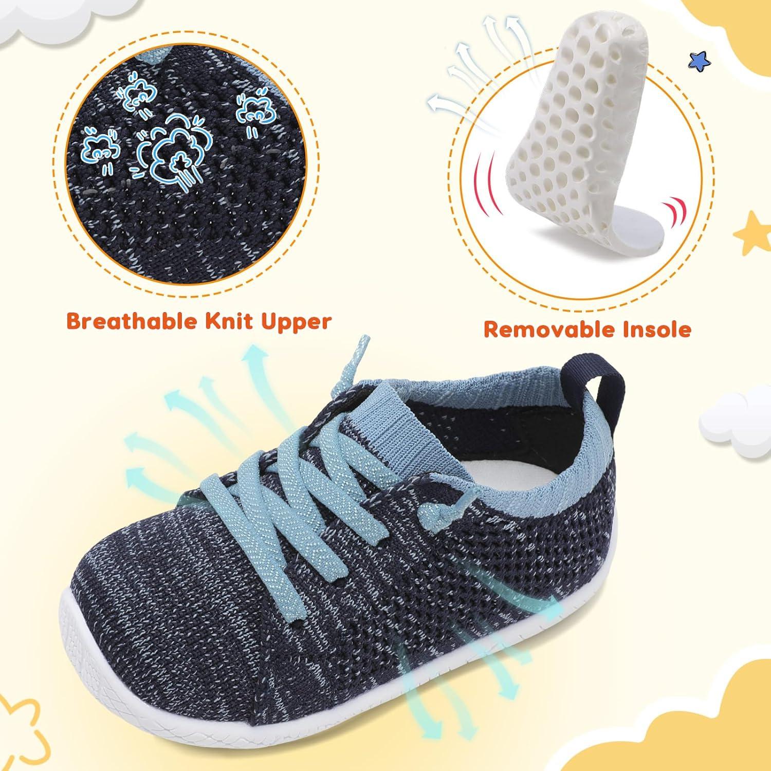LeIsfIt Baby Shoes Boys Girls First Walking Shoes Non-Slip Toddler Breathable Sneakers Infant Sneakers(B-navy)