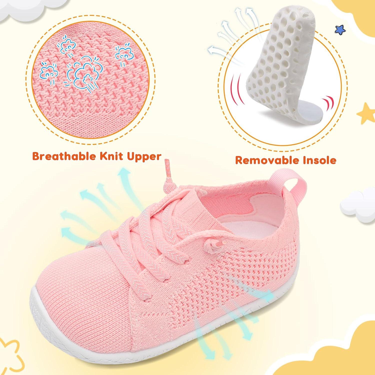 LeIsfIt Baby Shoes Girls Boys First Walking Shoes Infant Sneakers Crib Shoes Lightweight Non-Slip Shoes(B-pink)