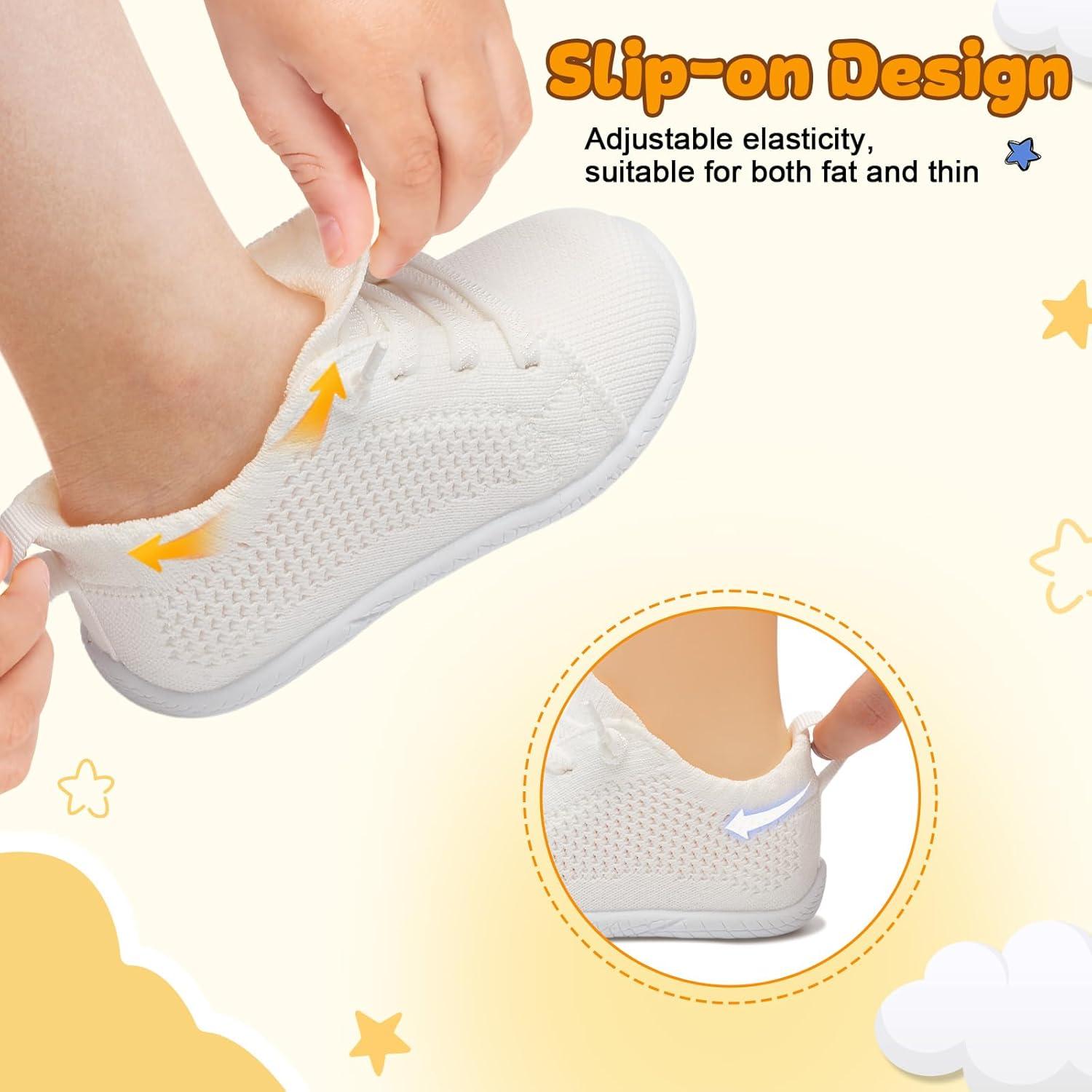 LeIsfIt Baby Shoes Boys Girls First Walking Shoes Non-Slip Infant Sneakers Lightweight Slip-on Crib Sneakers for First Walkers(White)