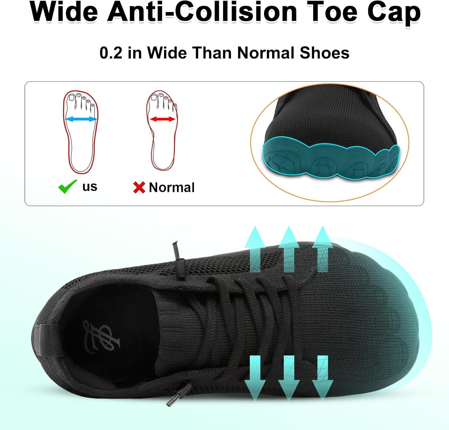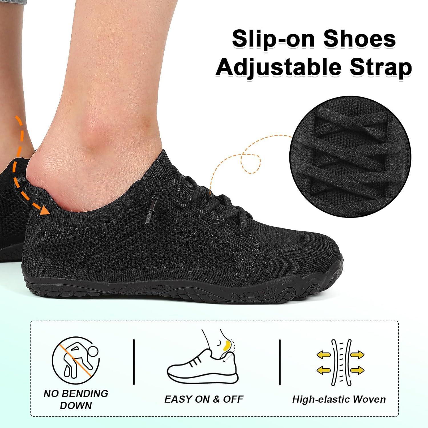 LeIsfIt Barefoot Shoes Women & Men Wide Toe Box Minimalist Sneakers Non-Slip Lightweight Slip-On Walking Shoes for Indoor, Outdoor & Daily Use(Black)