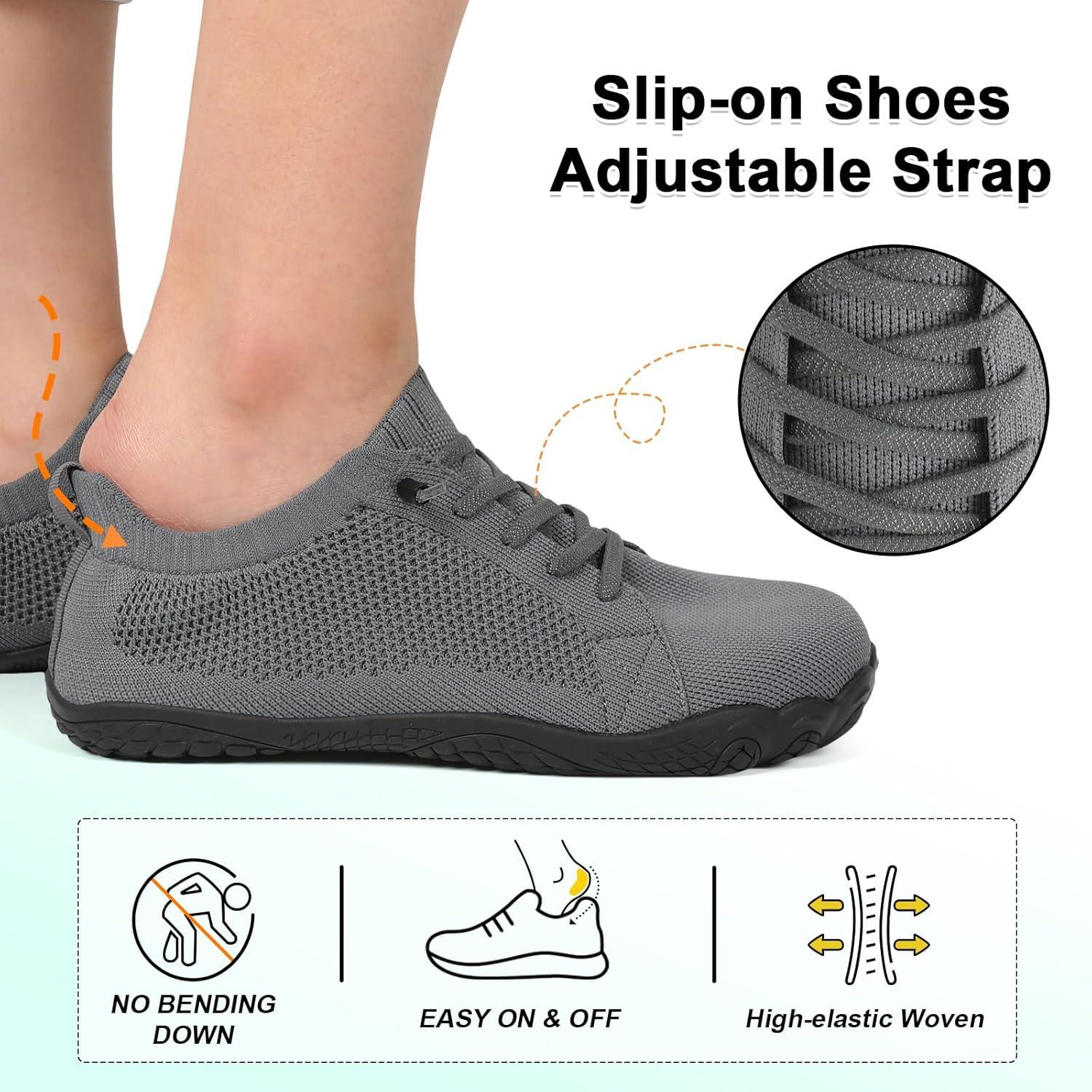 LeIsfIt Barefoot Shoes Women & Men Wide Toe Box Minimalist Sneakers Non-Slip Lightweight Slip-On Walking Shoes for Indoor, Outdoor & Daily Use(Dark Grey)