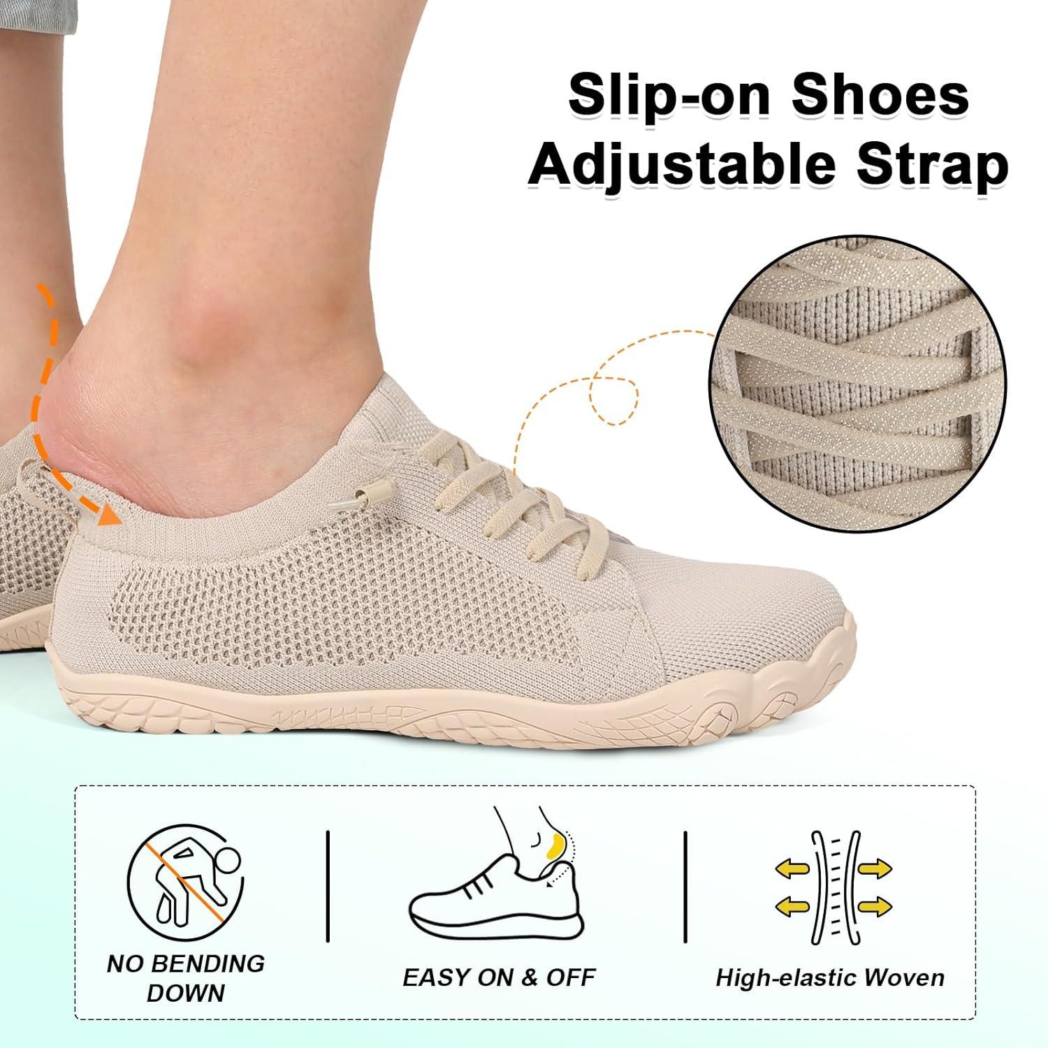 LeIsfIt Barefoot Shoes Women & Men Wide Toe Box Minimalist Sneakers Non-Slip Lightweight Slip-On Walking Shoes for Indoor, Outdoor & Daily Use(Taupe)