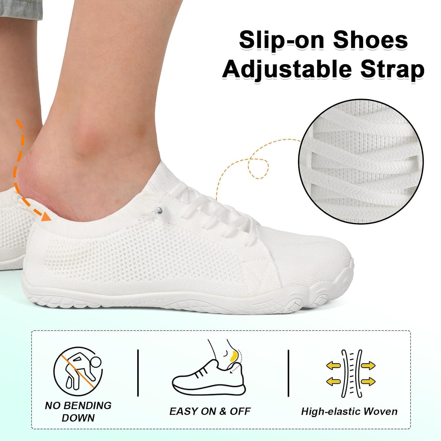 LeIsfIt Barefoot Shoes Women & Men Wide Toe Box Minimalist Sneakers Non-Slip Lightweight Slip-On Walking Shoes for Indoor, Outdoor & Daily Use(White)