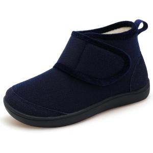 LeIsfIt Slipper Boots for Women Wide Warm House Shoes Non-slip Diabetic Winter Shoes Adjustable Bootie Slippers for Indoor & Outdoor(Navyblue)