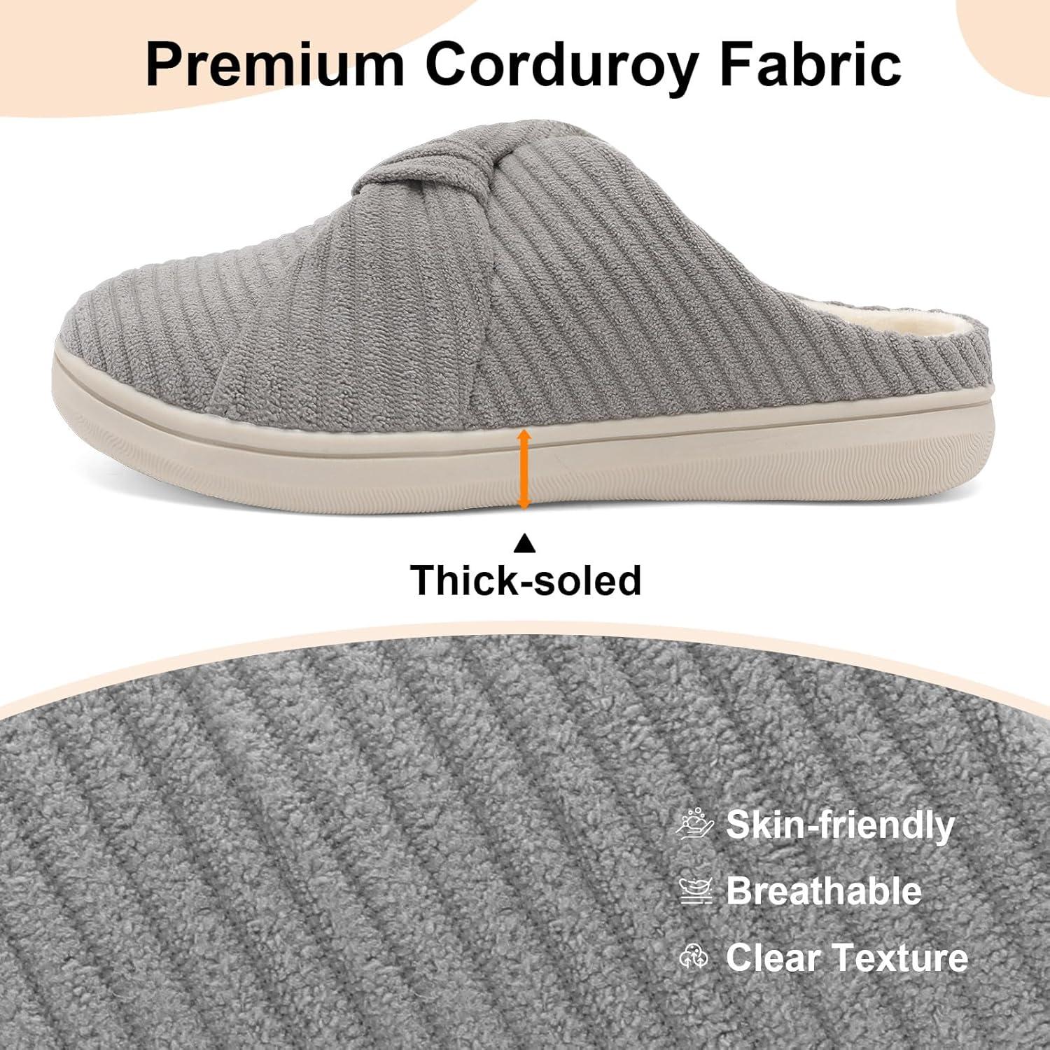 LeIsfIt Slippers for Women Wide Memory Foam House Slippers Corduroy Slip on Bedroom Slipper Non-slip Warm House Shoes Indoor and Outdoor(Darkgrey)