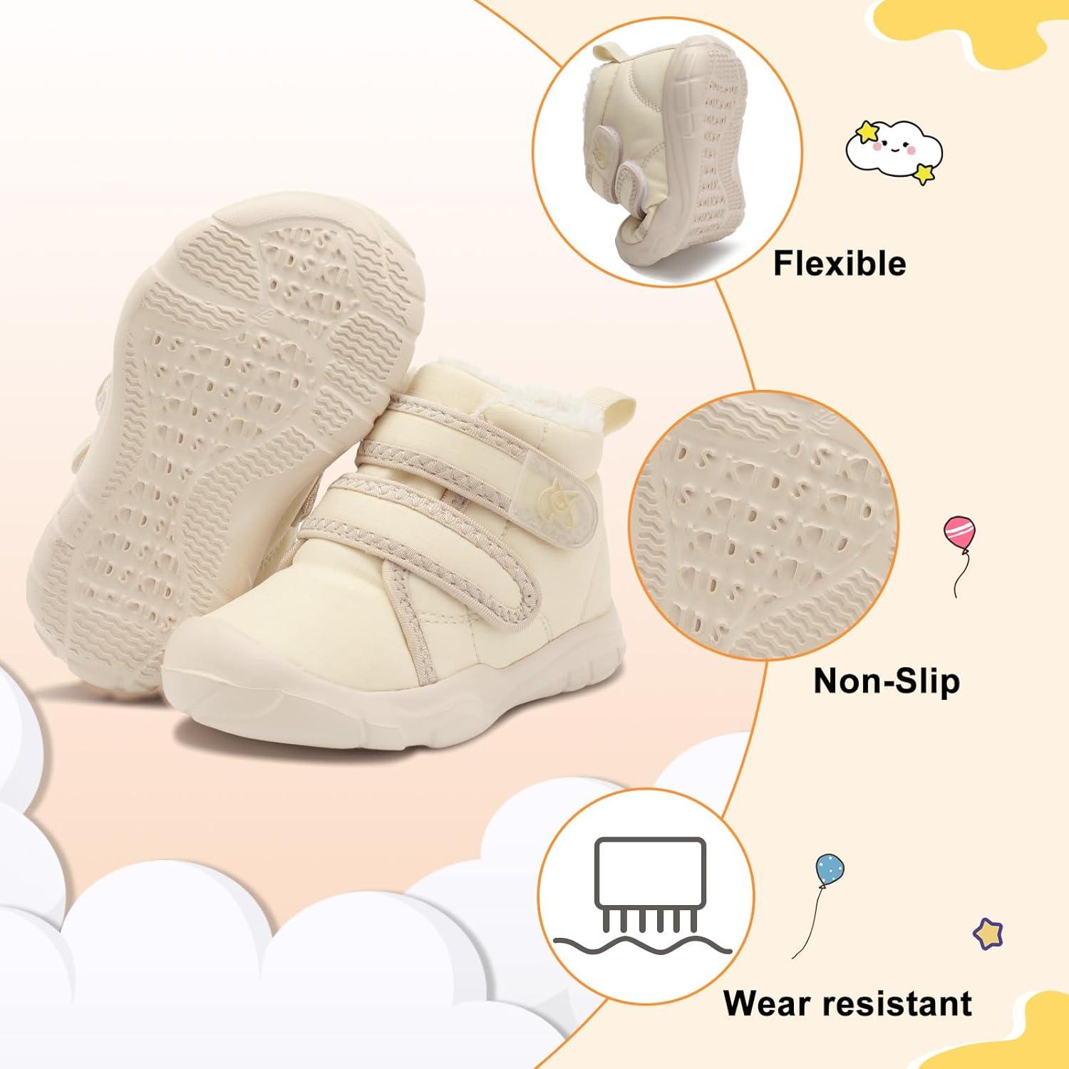 LeIsfIt Toddler Boots Girls Boys Warm Winter Boots Cozy Plush Lining Winter Shoes Indoor Outdoor Faux Fur Booties(Beige)
