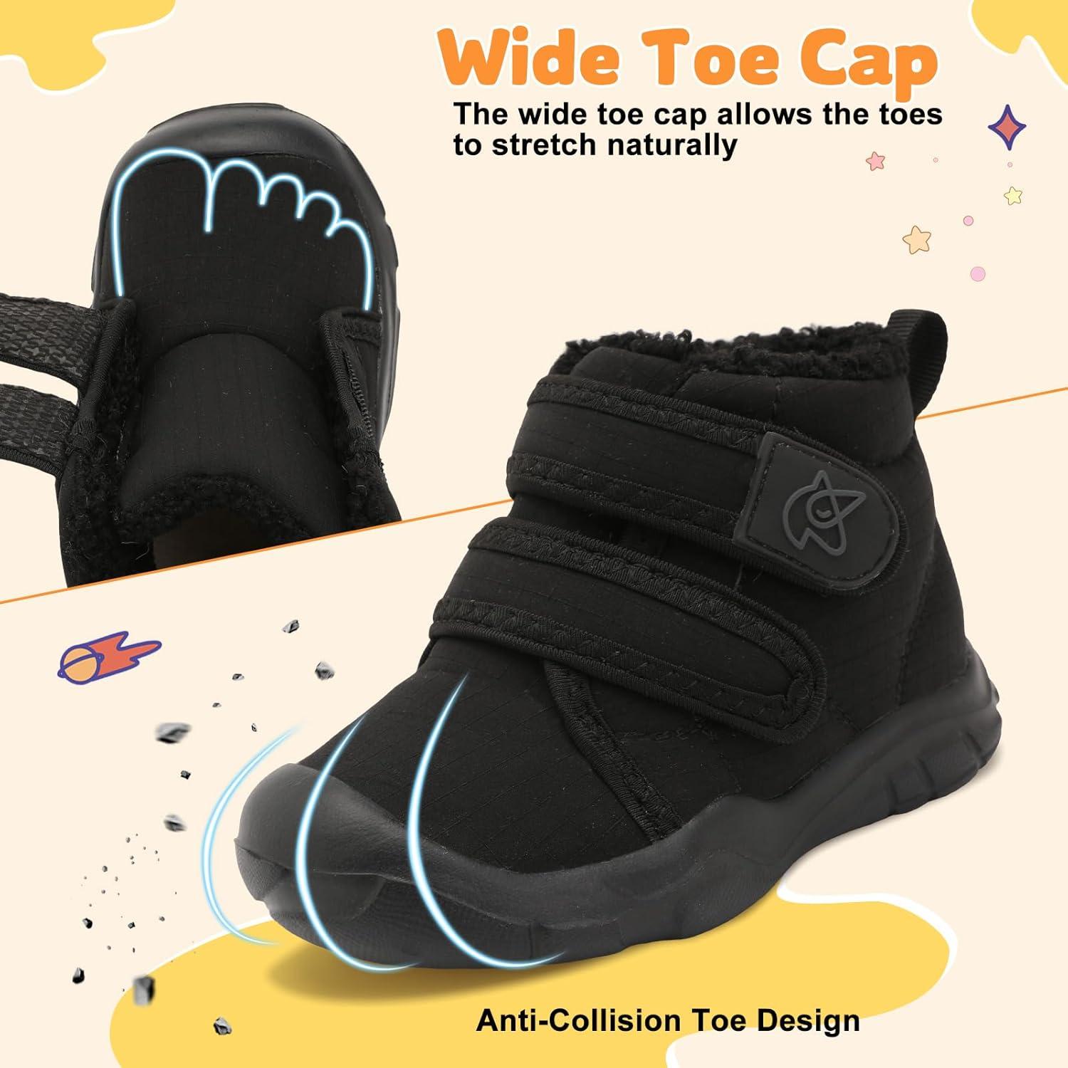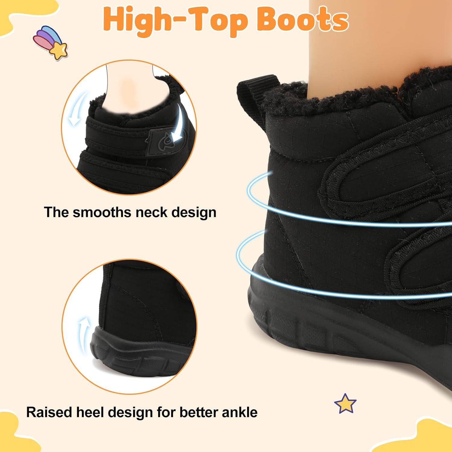 LeIsfIt Toddler Boots Girls Boys Warm Winter Boots Cozy Plush Lining Winter Shoes Indoor Outdoor Faux Fur Booties(Black)