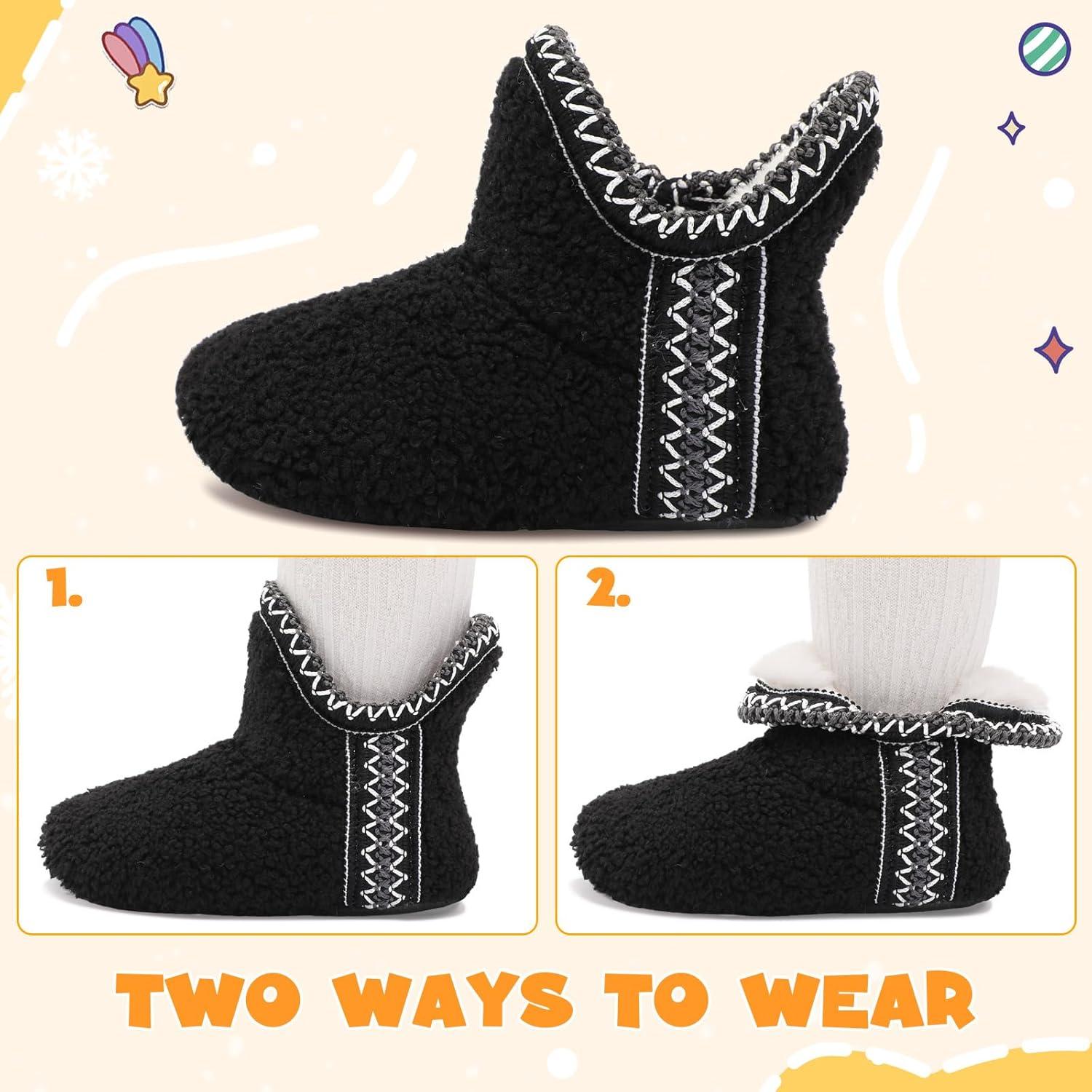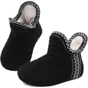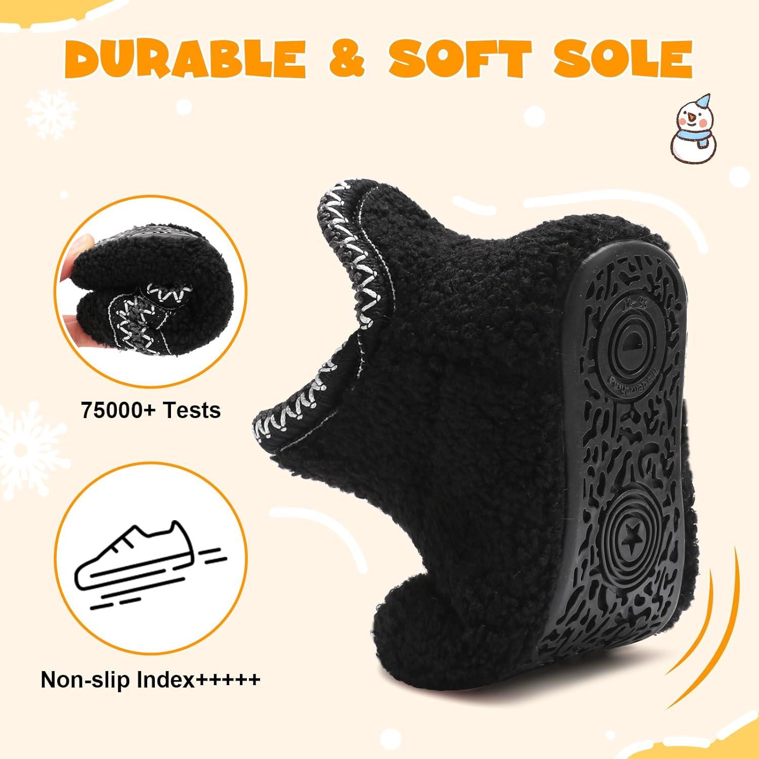 LeIsfIt Toddler Slippers Boys Girls Cozy Warm House Shoes Kids Non-slip Winter Slipper Booties Slip on Plush Lining Sock Slippers(Allblack)