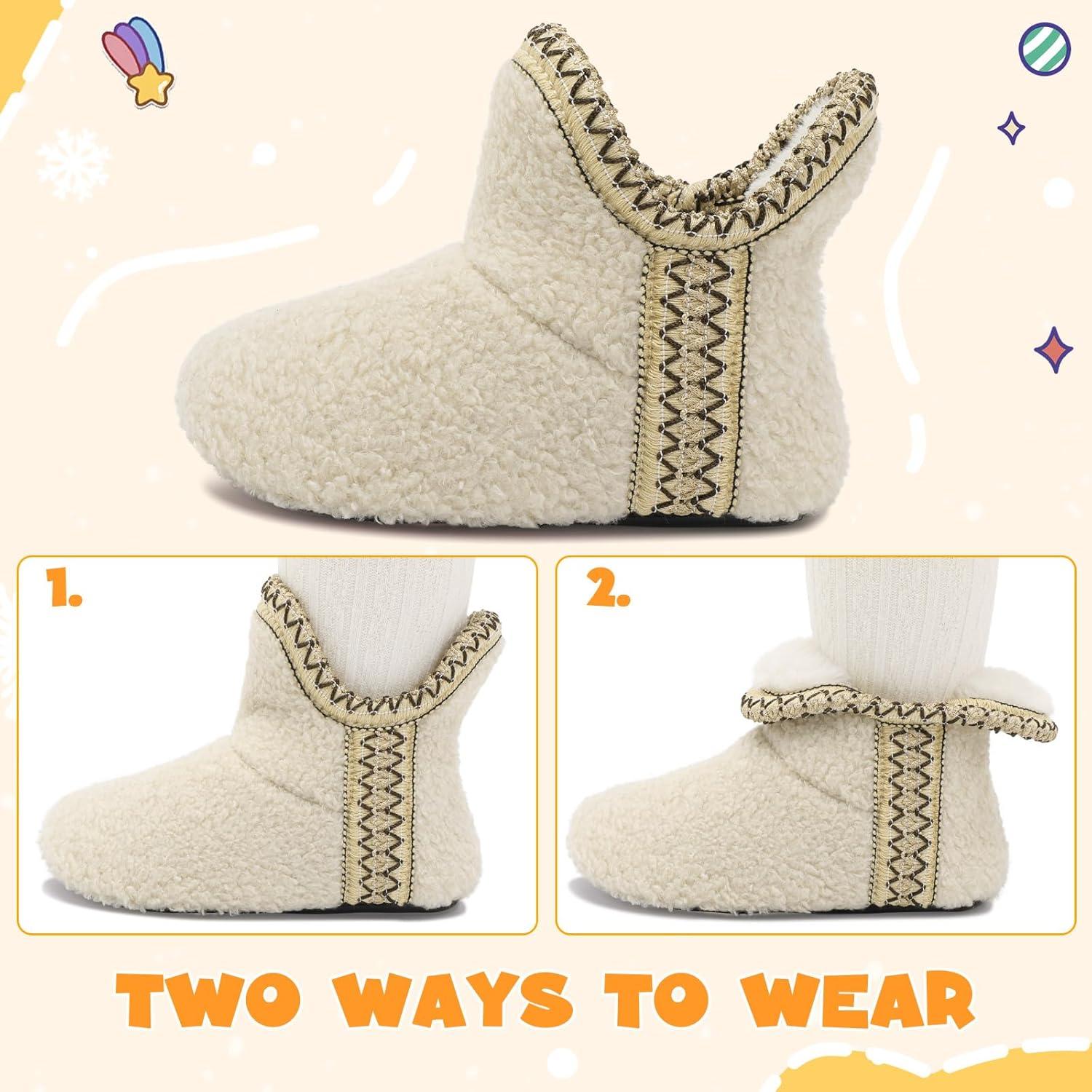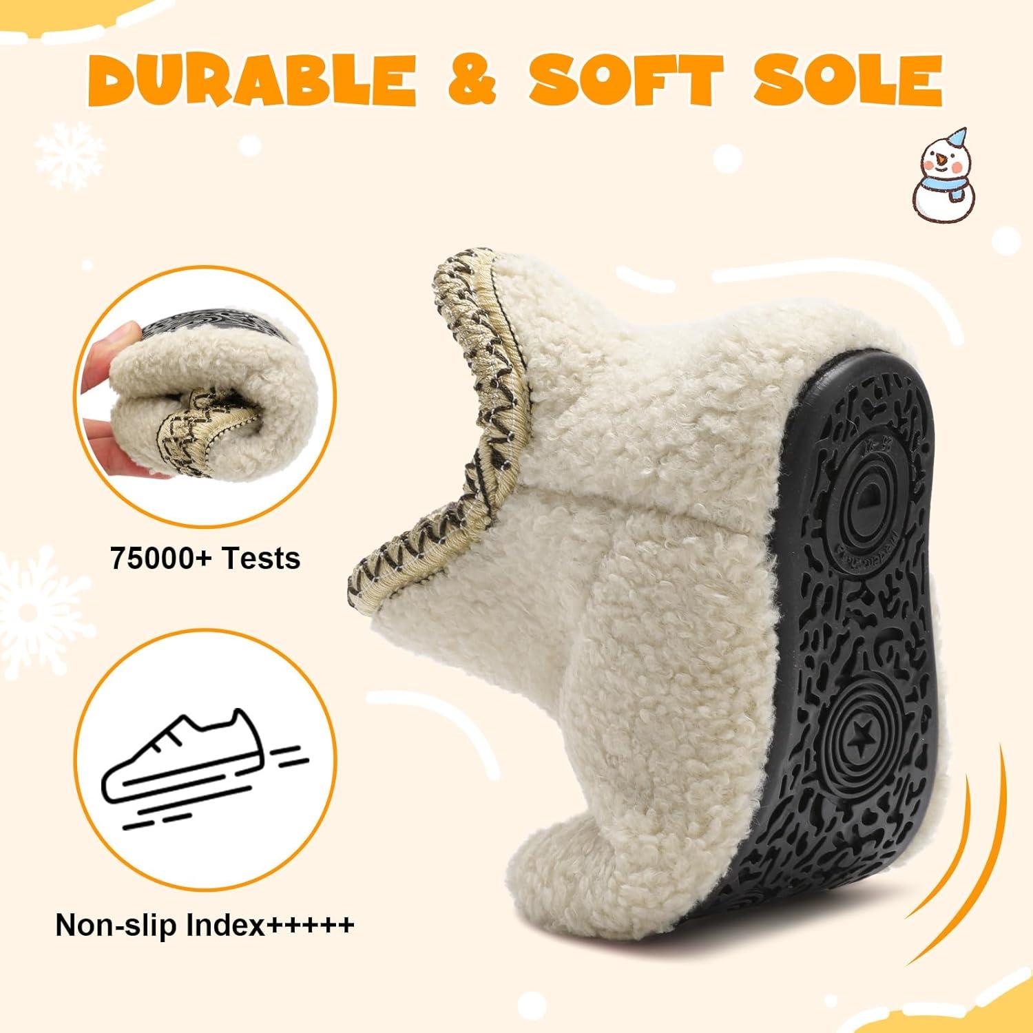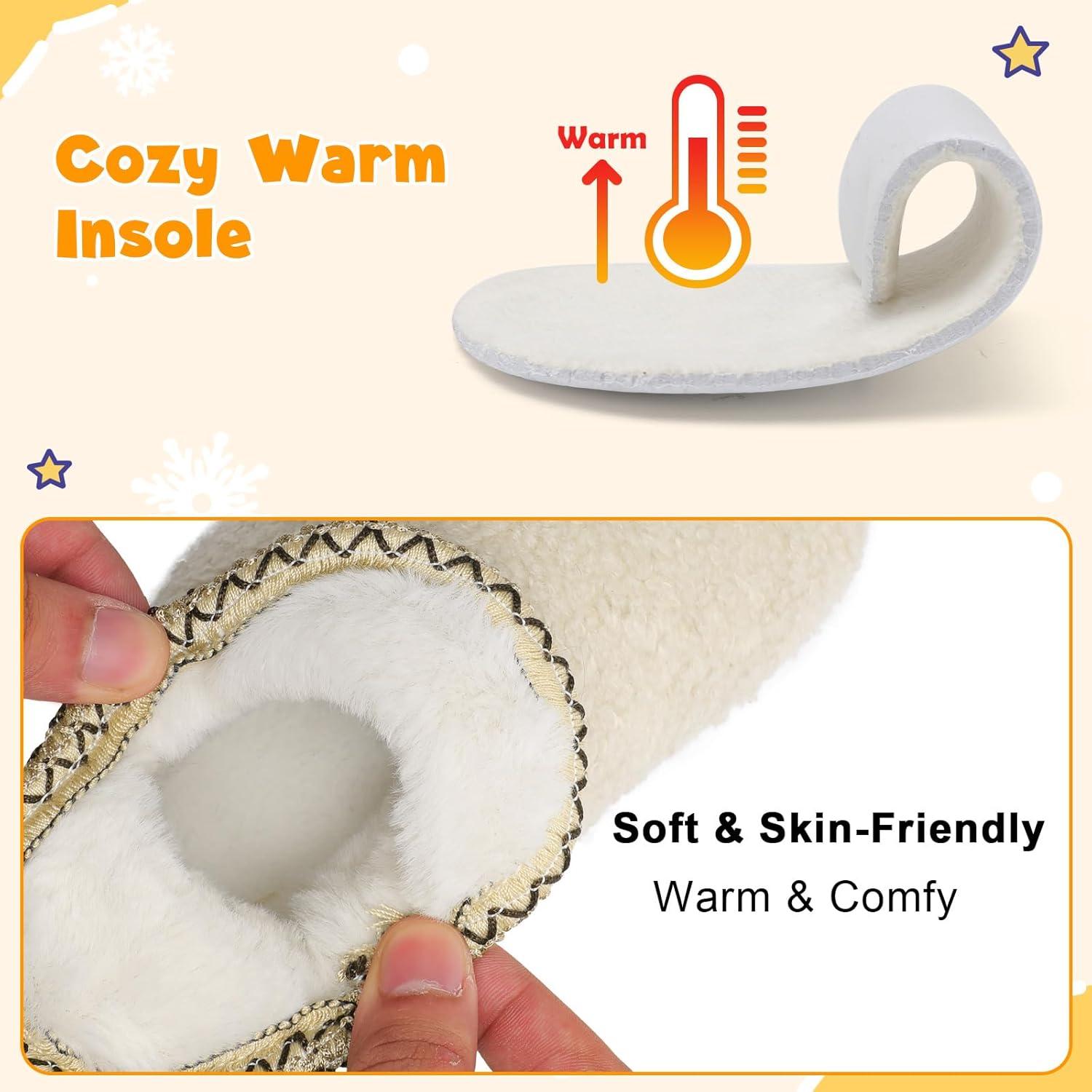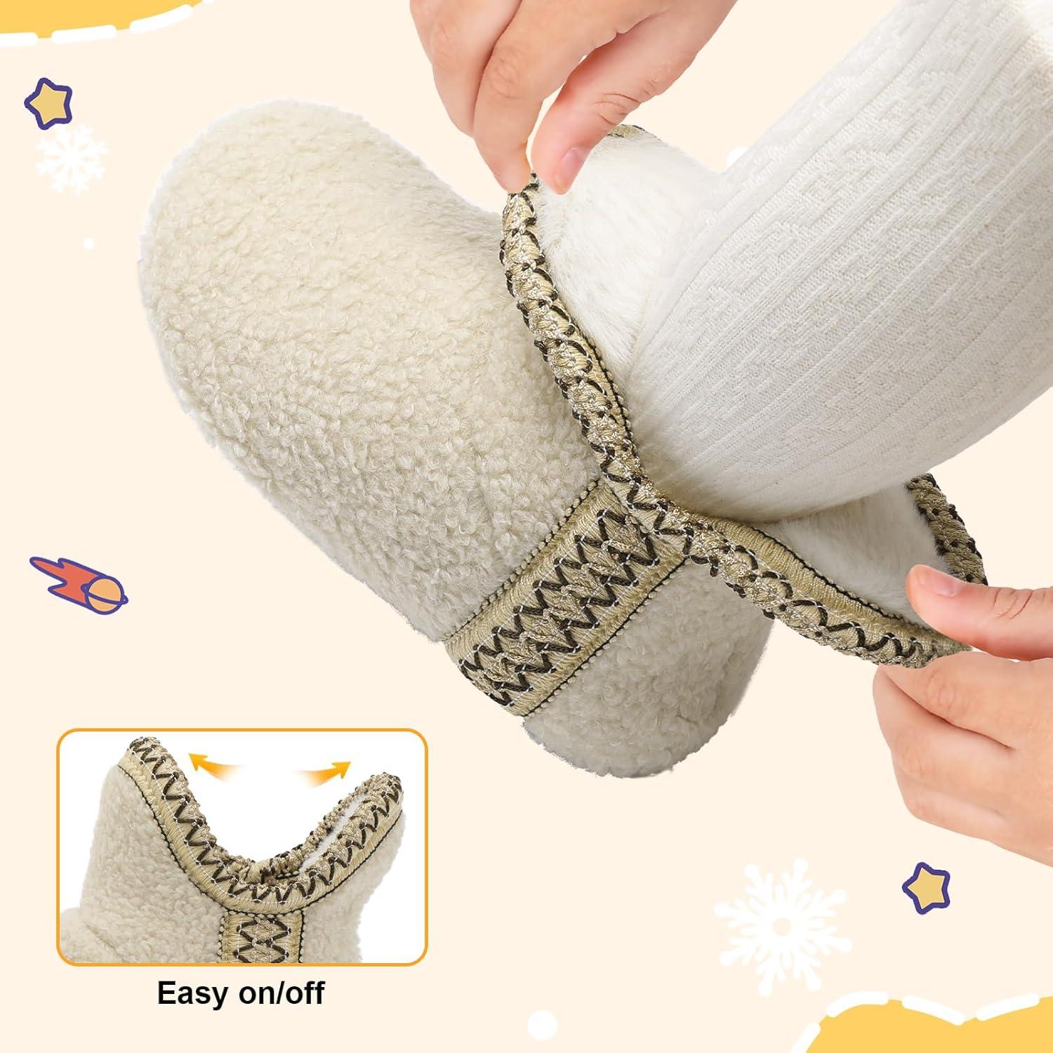 LeIsfIt Toddler Slippers Boys Girls Cozy Warm House Shoes Kids Non-slip Winter Slipper Booties Slip on Plush Lining Sock Slippers(White)