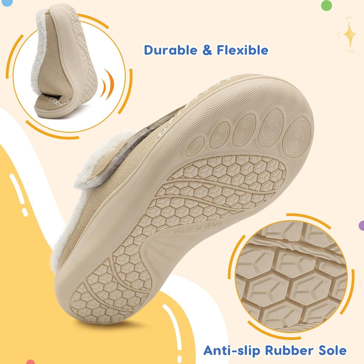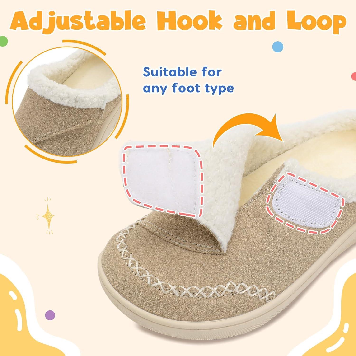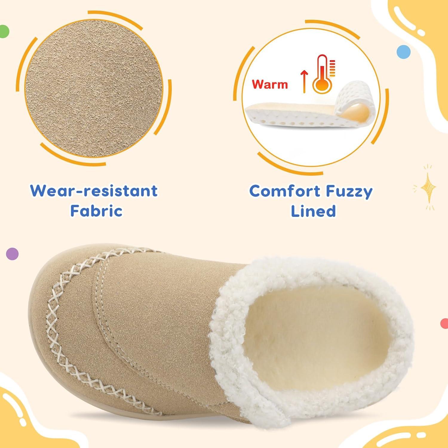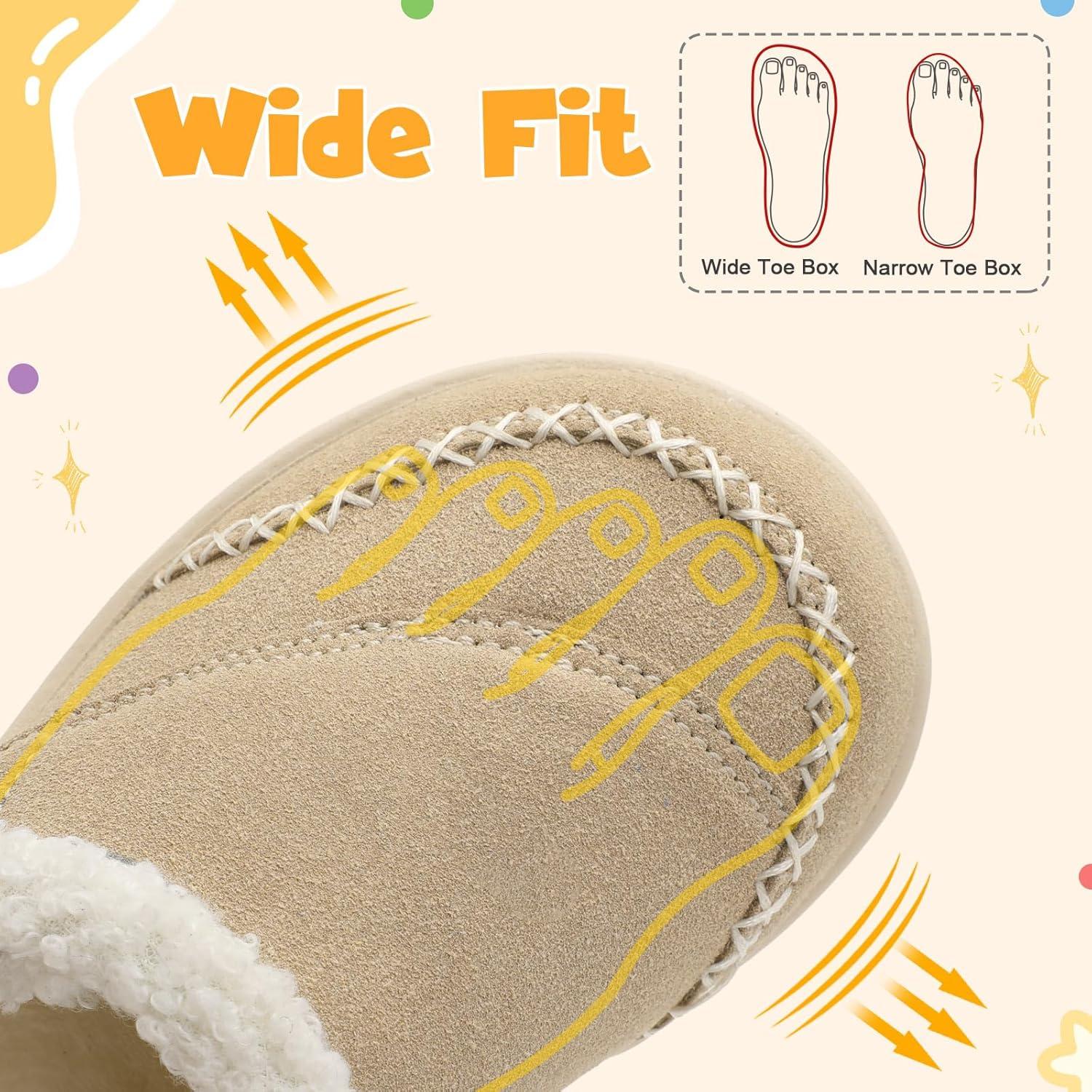 LeIsfIt Toddler Slippers Boys Girls Moccasin Slippers Kids Warm Slip-On House Shoes with Non-Slip Sole for Indoor & Outdoor(Apricot)