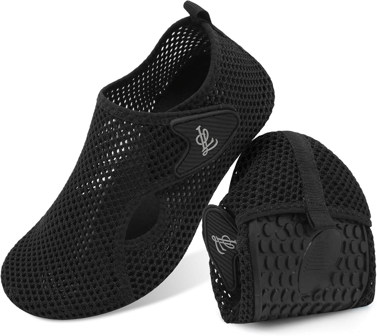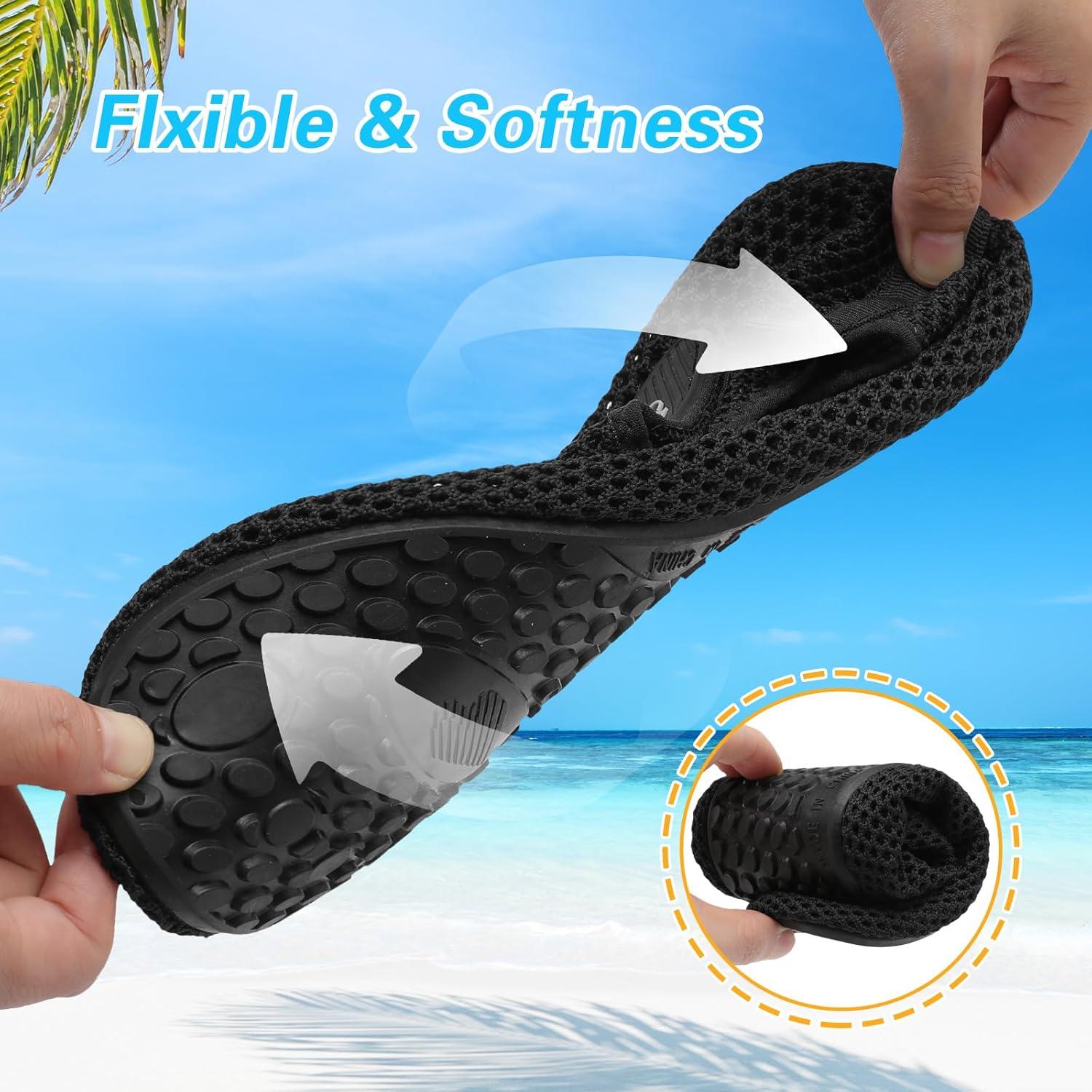 LeIsfIt Water Shoes for Women Men Wide Swim Beach Barefoot Shoes Quick Dry Aqua Socks for Pool Diving Boating River Yoga Lake Surf(Black/Knit)