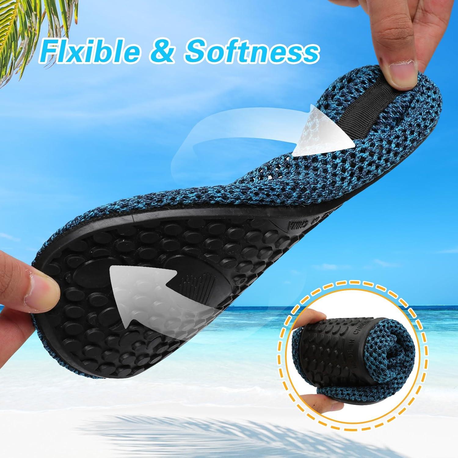 LeIsfIt Water Shoes for Women Men Wide Swim Beach Barefoot Shoes Quick Dry Aqua Socks for Pool Diving Boating River Yoga Lake Surf(Cyan)